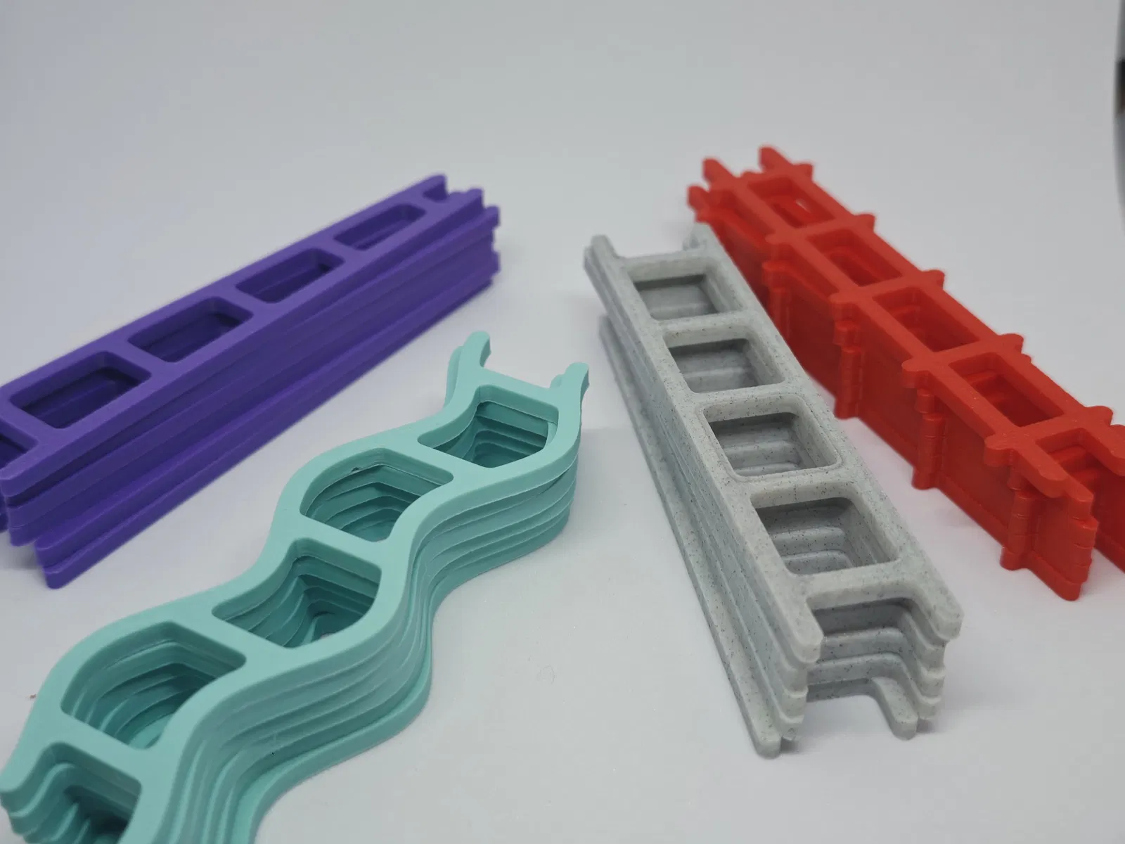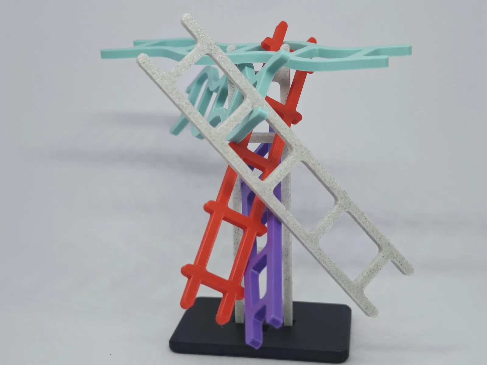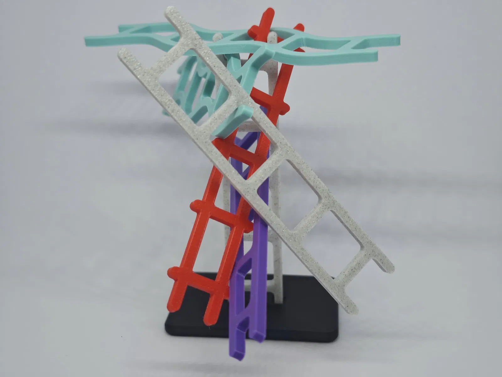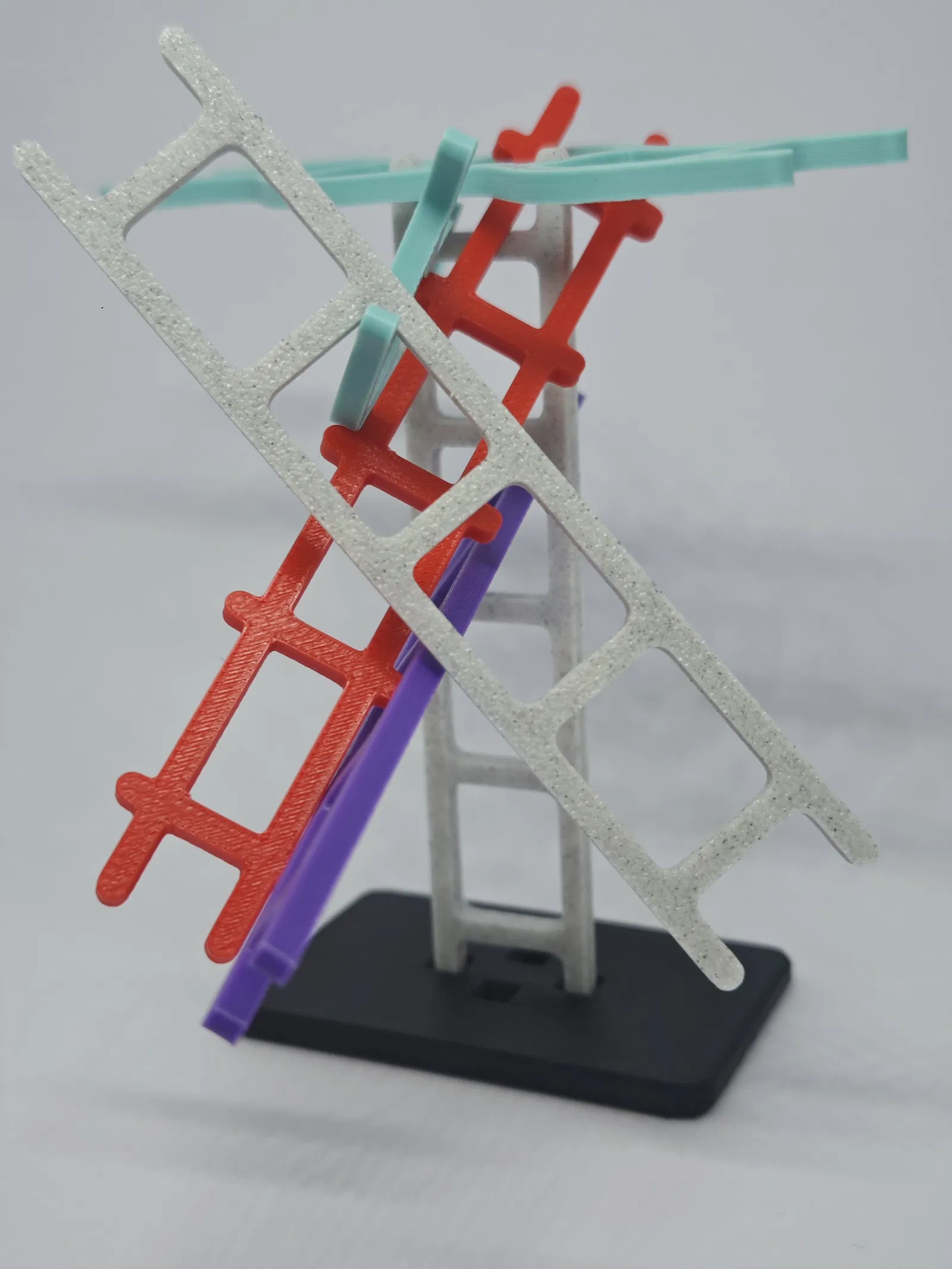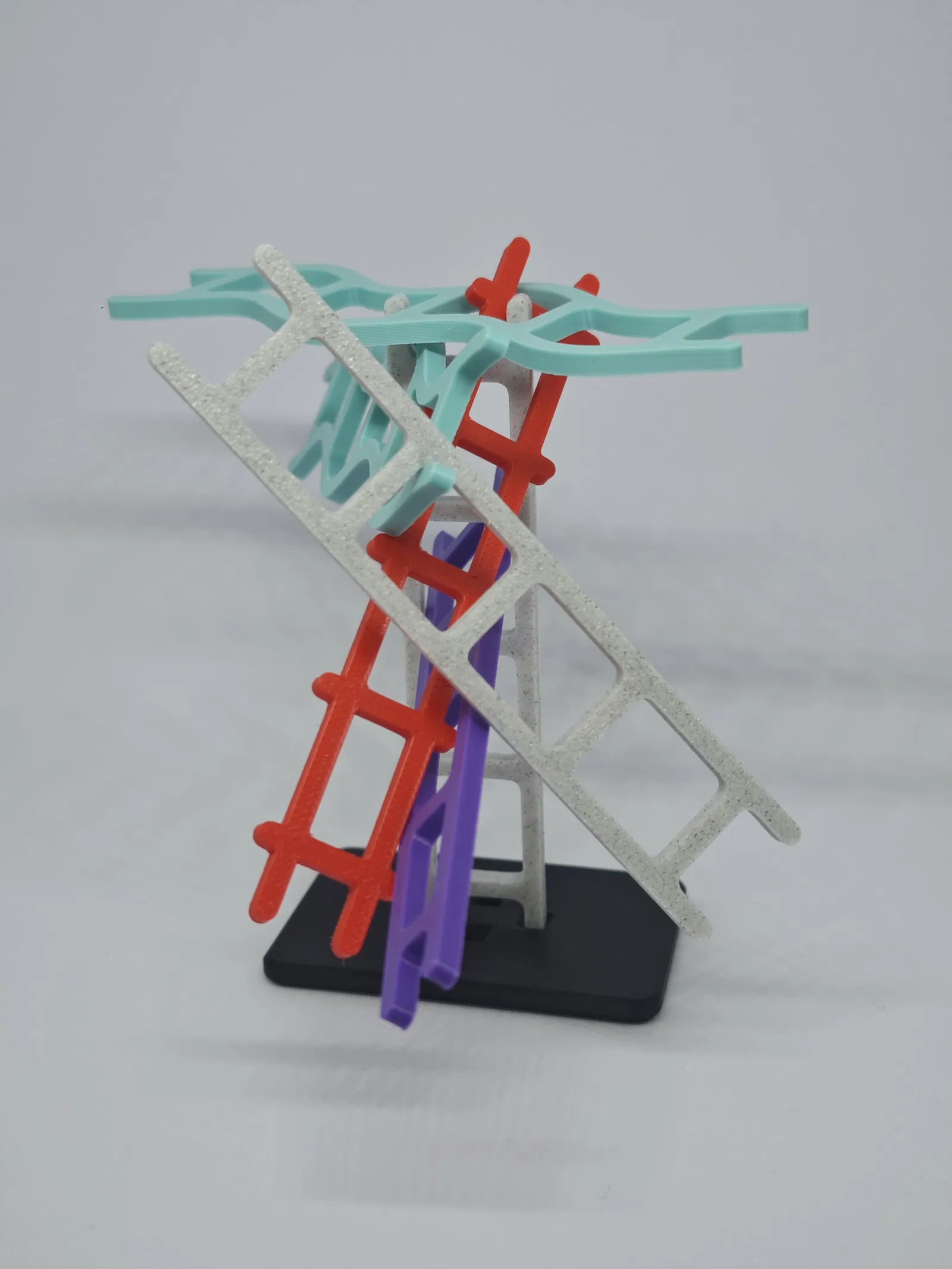Bộ game gồm một đế (base plate) và bốn kiểu thang khác nhau, mỗi kiểu có “tính nết” riêng (đôi khi khá là gây hấn):