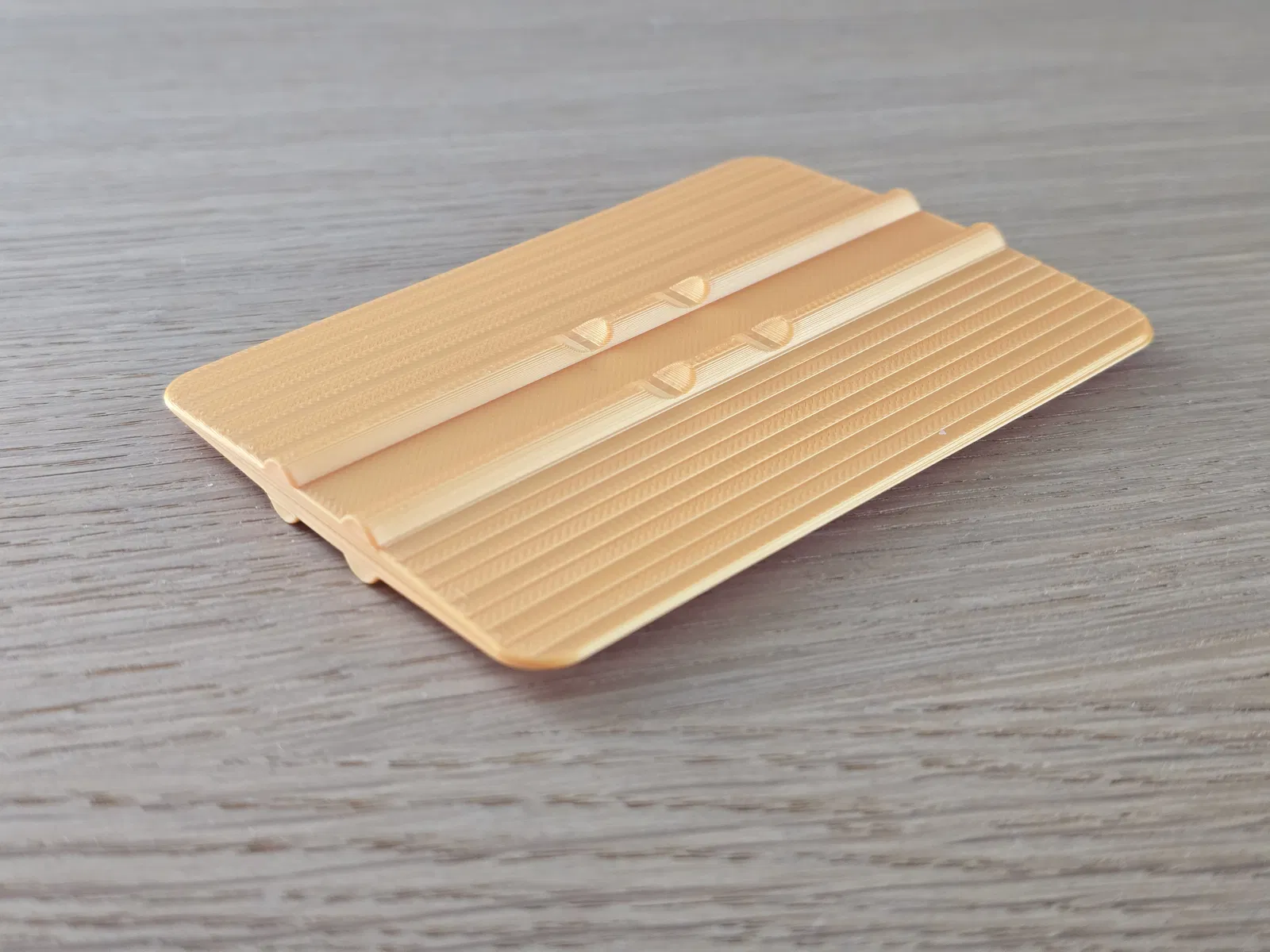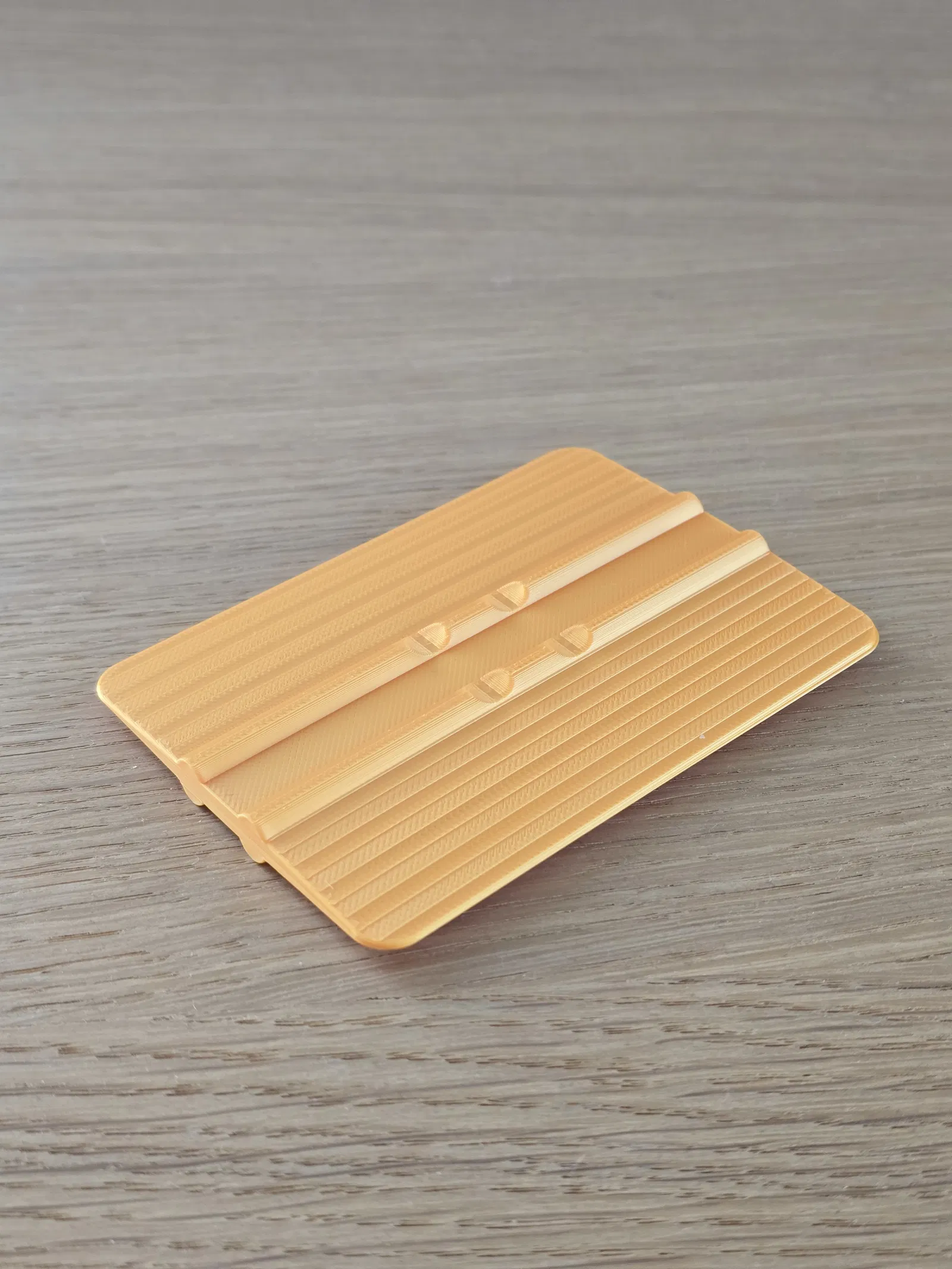 Rakel/squeegee tự thiết kế giúp việc dán vinyl, wrap xe và dán phim kính (tint) dễ hơn. Có 2 bản: 1 mảnh in dựng (bề mặt đẹp) và 2 mảnh in phẳng rồi dán (cứng, nhanh). Khuyên in PETG/ABS; PLA cũng ổn.