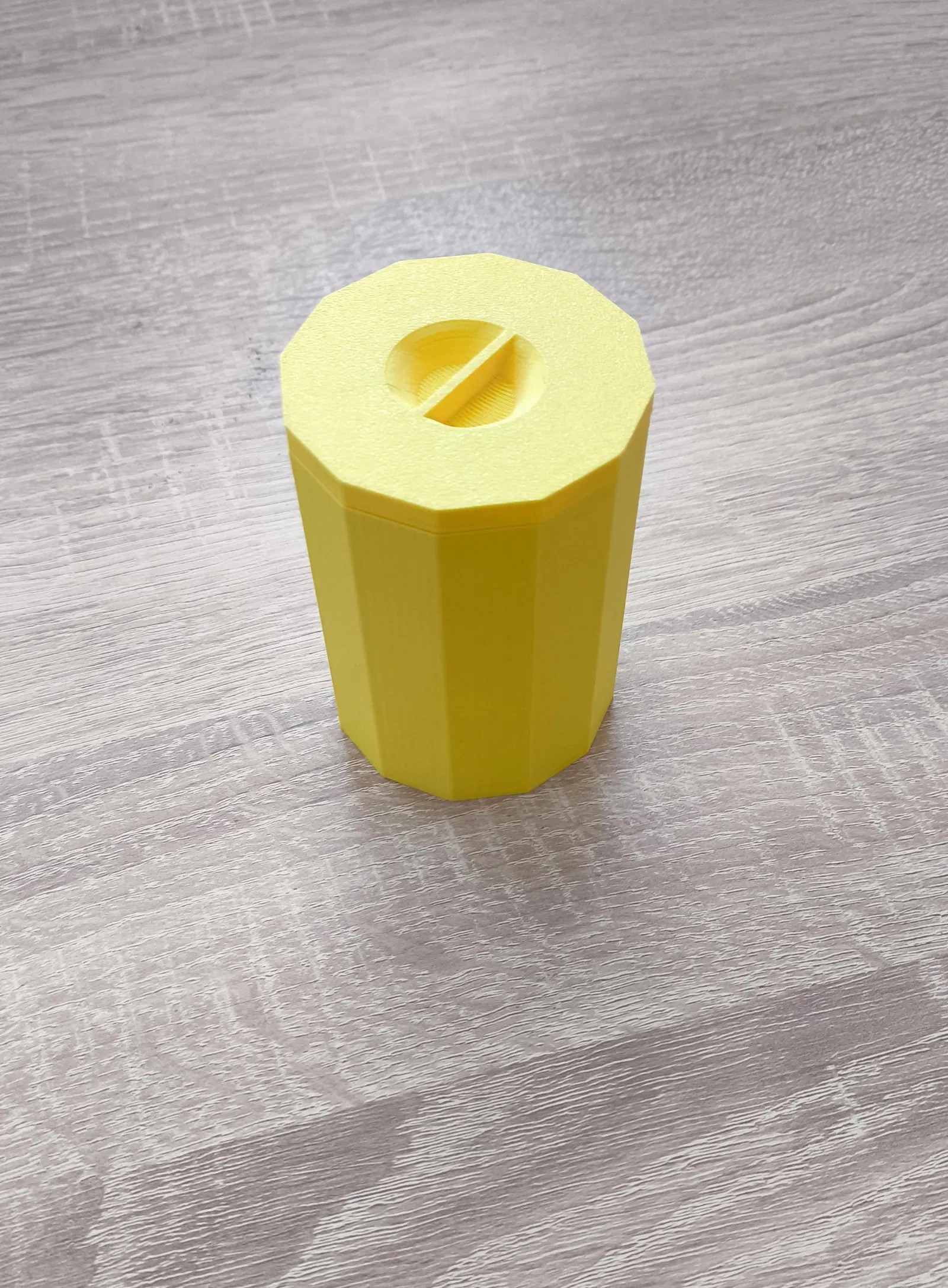Mẫu hộp lục giác có nắp thiết kế đơn giản, tiện dụng, dễ xếp chồng để lưu trữ gọn gàng. Phù hợp đựng đồ nhỏ, đồ văn phòng hoặc ốc vít, bu-lông. In PLA/PETG, infill 10–15%, 2–3 walls, không cần support.