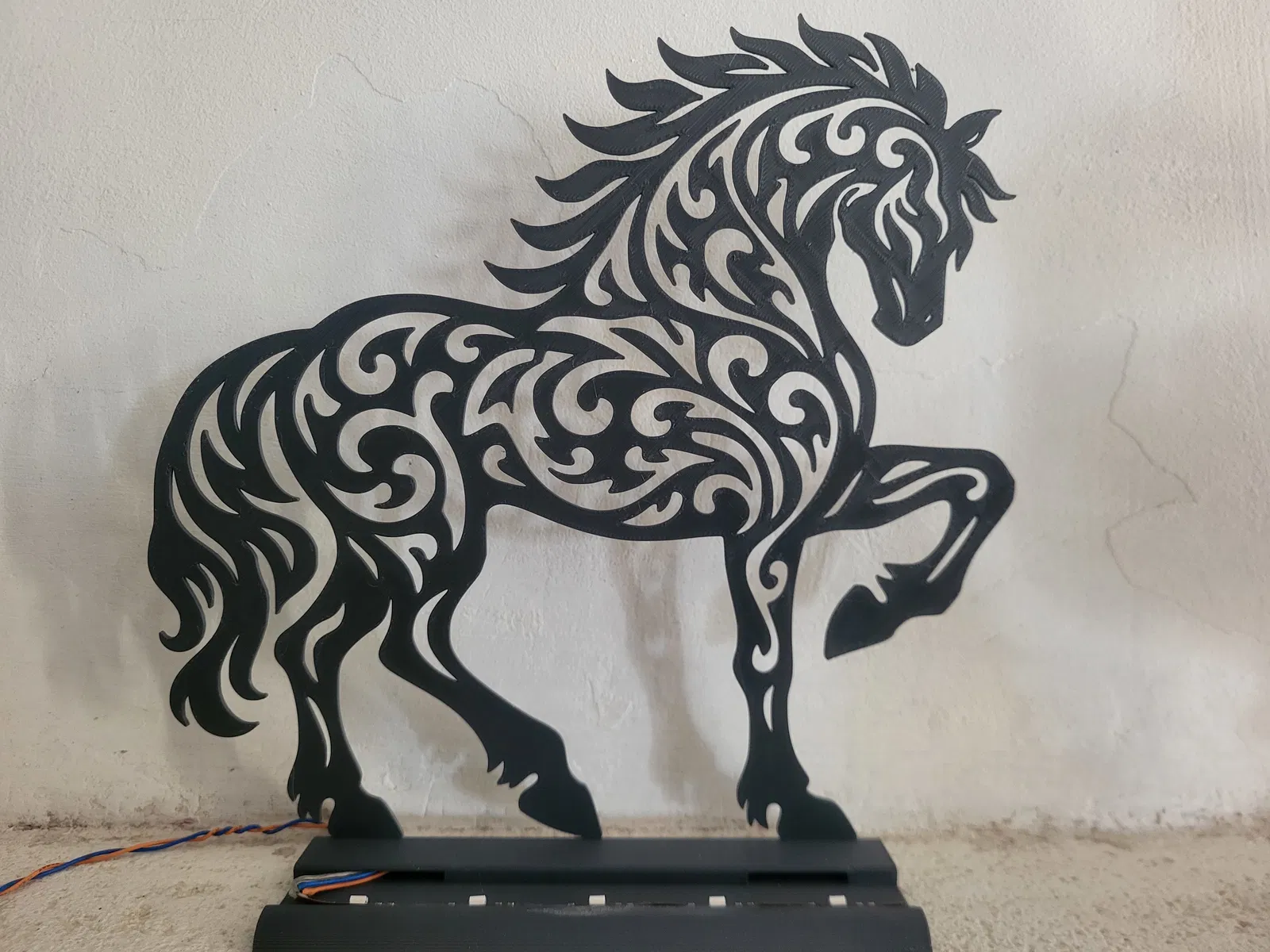 Mẫu đèn ngựa LED in 3D này rất hợp với anh em maker thích một tác phẩm phát sáng gọn gàng, dùng được liền, nhìn ấn tượng, có quản lý dây tích hợp và cá tính nghệ thuật rõ ràng.