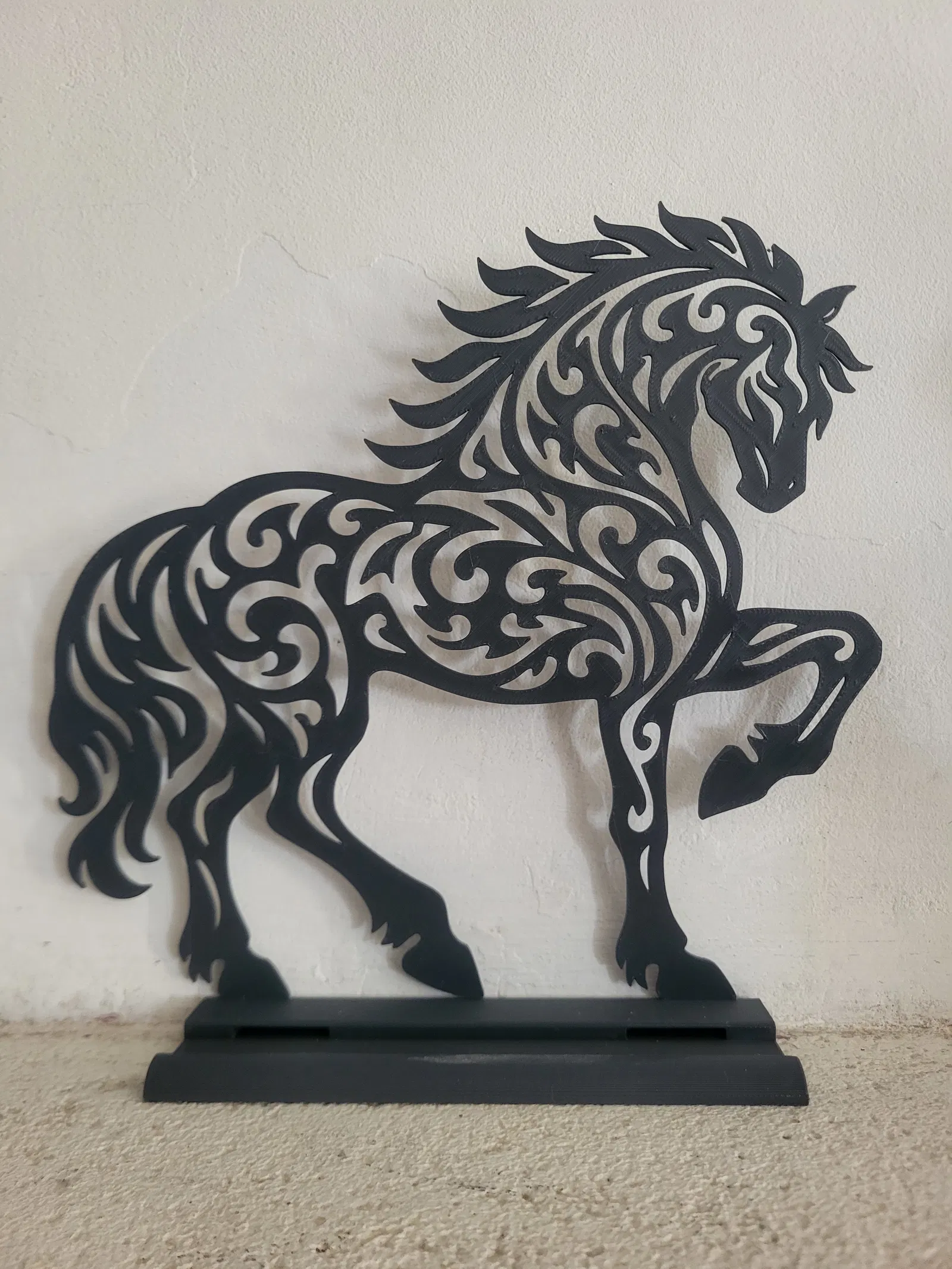 Lấy cảm hứng từ hoa văn kiểu tribal, phần silhouette ngựa tạo hiệu ứng thị giác rất “đã” khi được backlit. Khi bật đèn, mẫu cho ánh sáng nổi bật kèm lớp bóng đổ nhiều tầng, rất hợp làm đèn ambient và đồ trưng bày trong phòng khách, phòng ngủ, văn phòng, xưởng, hoặc góc gaming.