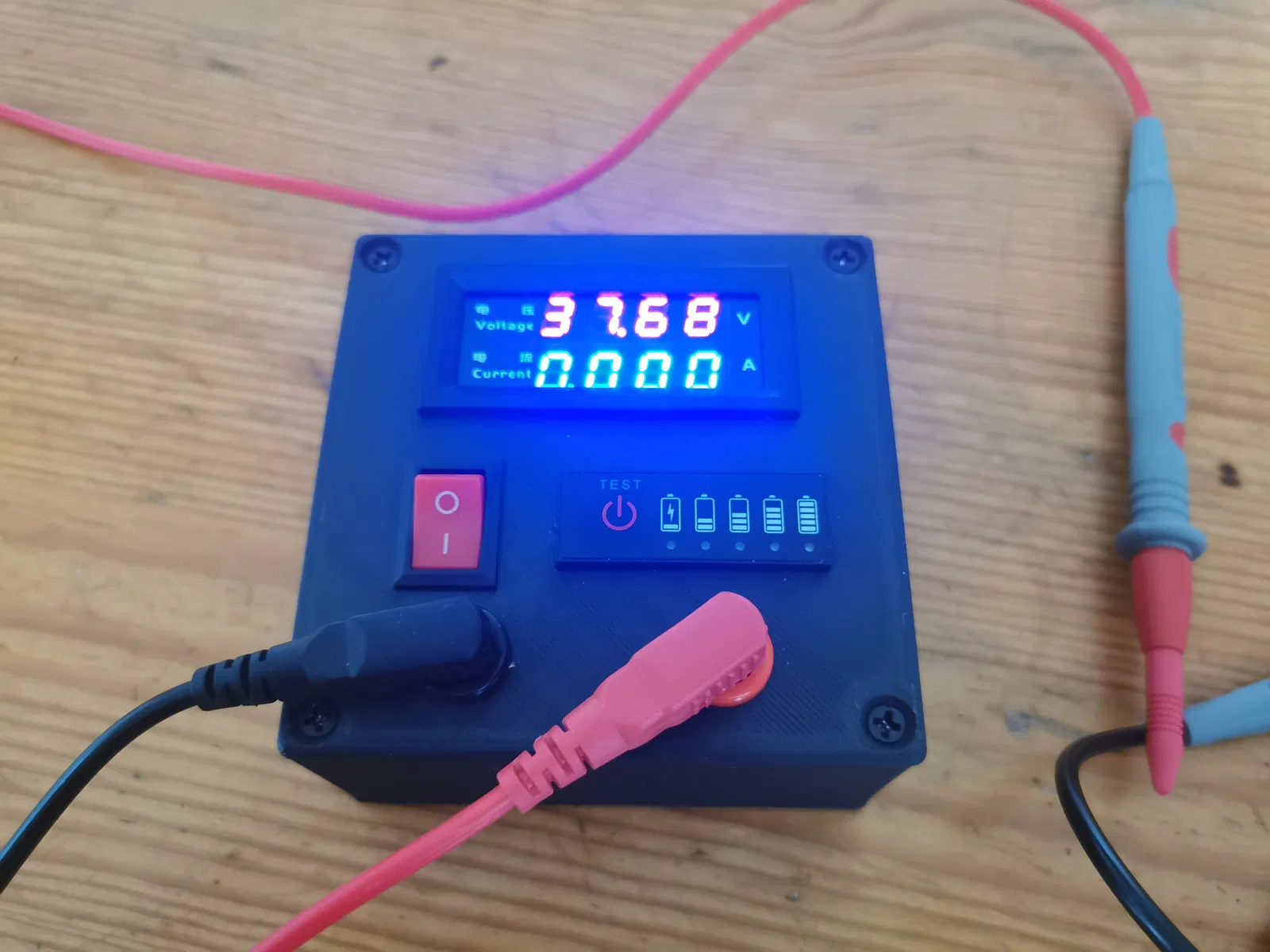 Đây là một bộ test LED hoàn chỉnh có Voltmeter và Ammeter, cho phép test LED/diode và hiển thị điện áp (voltage) cùng dòng điện (ampérage). Thiết bị dùng pin nên hoạt động độc lập. Có cổng USB-C để sạc, kèm 2 diode báo trạng thái (đang sạc – đã sạc). Máy có công tắc nguồn. Bản vẽ/hướng dẫn để tự làm có thể dễ dàng tìm trên YouTube. Mình có bổ sung thêm bộ test pin để kiểm tra xem thiết bị có bị hết pin không và sẵn sàng sử dụng.