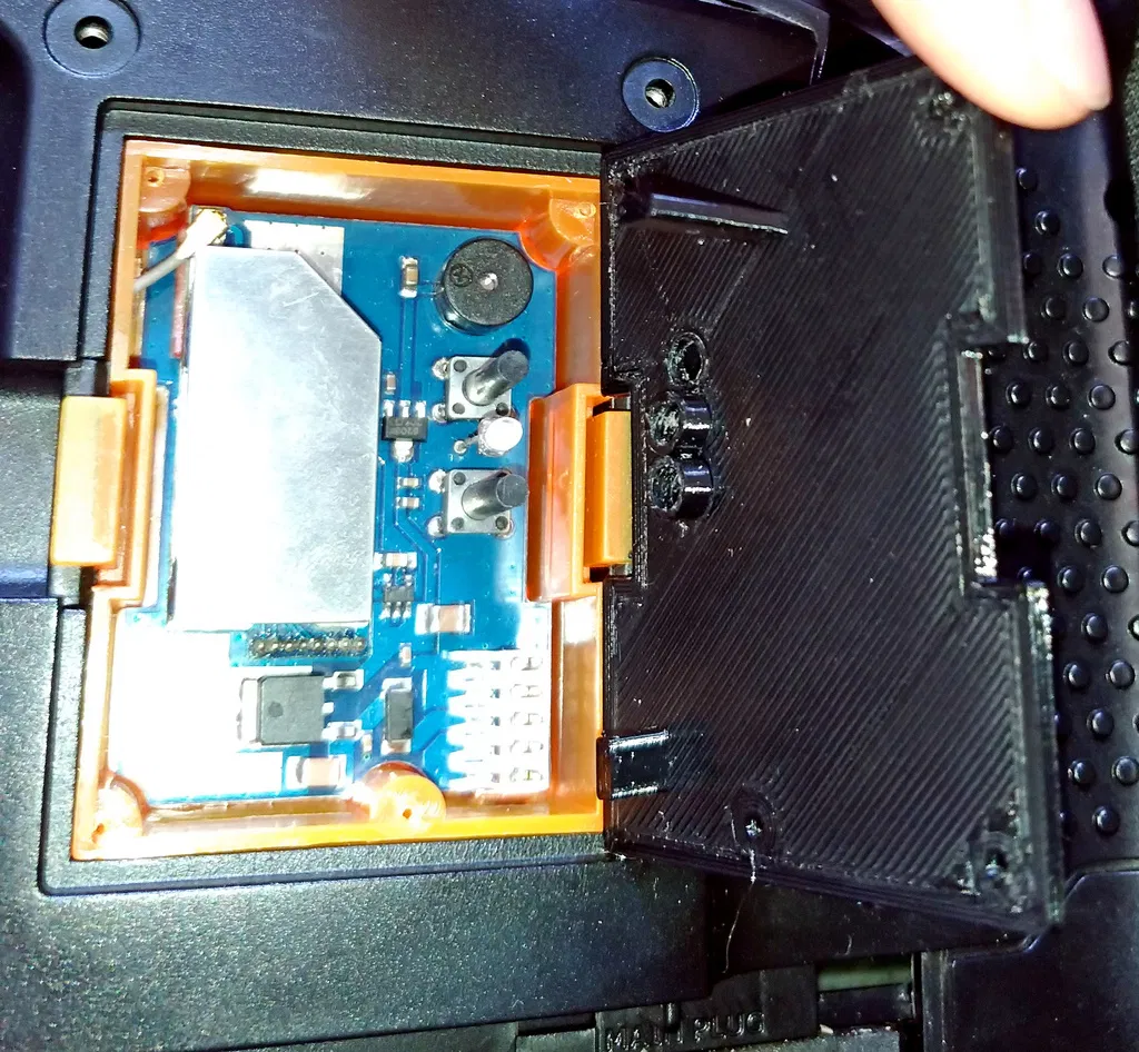 Bản remix từ "OrangeRx Spektrum DSM/DSM2 JR module replacement cover -- Antenna relocation" của abobotek (thingiverse.com/thing:391383).