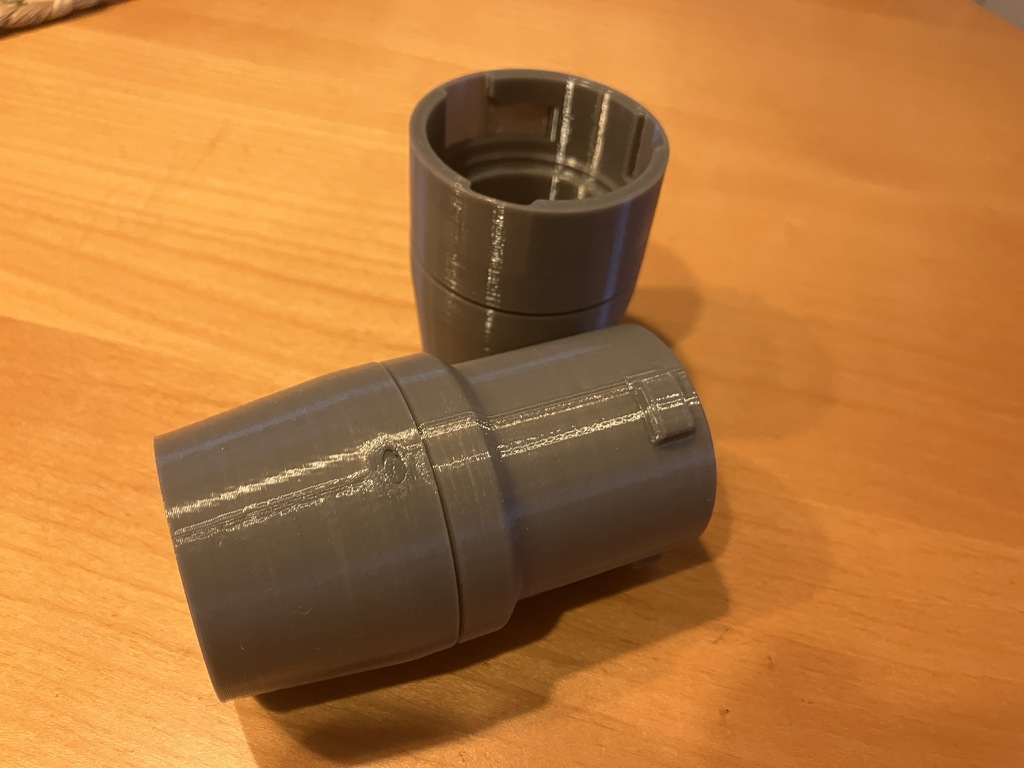 Đầu nối ống osVAC tối giản, dễ in cho ống D27/32mm (Festool/Bosch). Thiết kế gọn để tránh cạ phôi khi chà nhám, có slip ring kiểu osVAC neo và tùy chọn O-ring 37x32x2.5mm để kín khí.