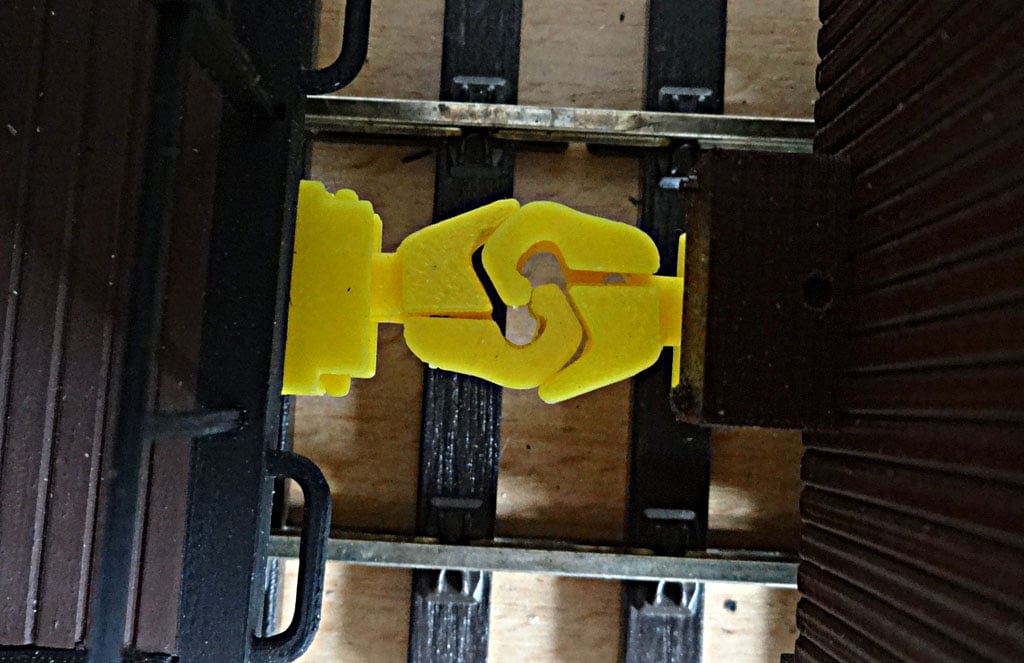 Khớp nối tự động hoạt động đúng như mong đợi và không bị tuột móc ngay cả khi vào cua gắt. Nó cũng tương thích đúng với coupler Kadee 820 (và có thể cả các hãng khác nữa). Lò xo được in sẵn nên không cần mấy lò xo thép nhỏ, mắc tiền và khó kiếm.
