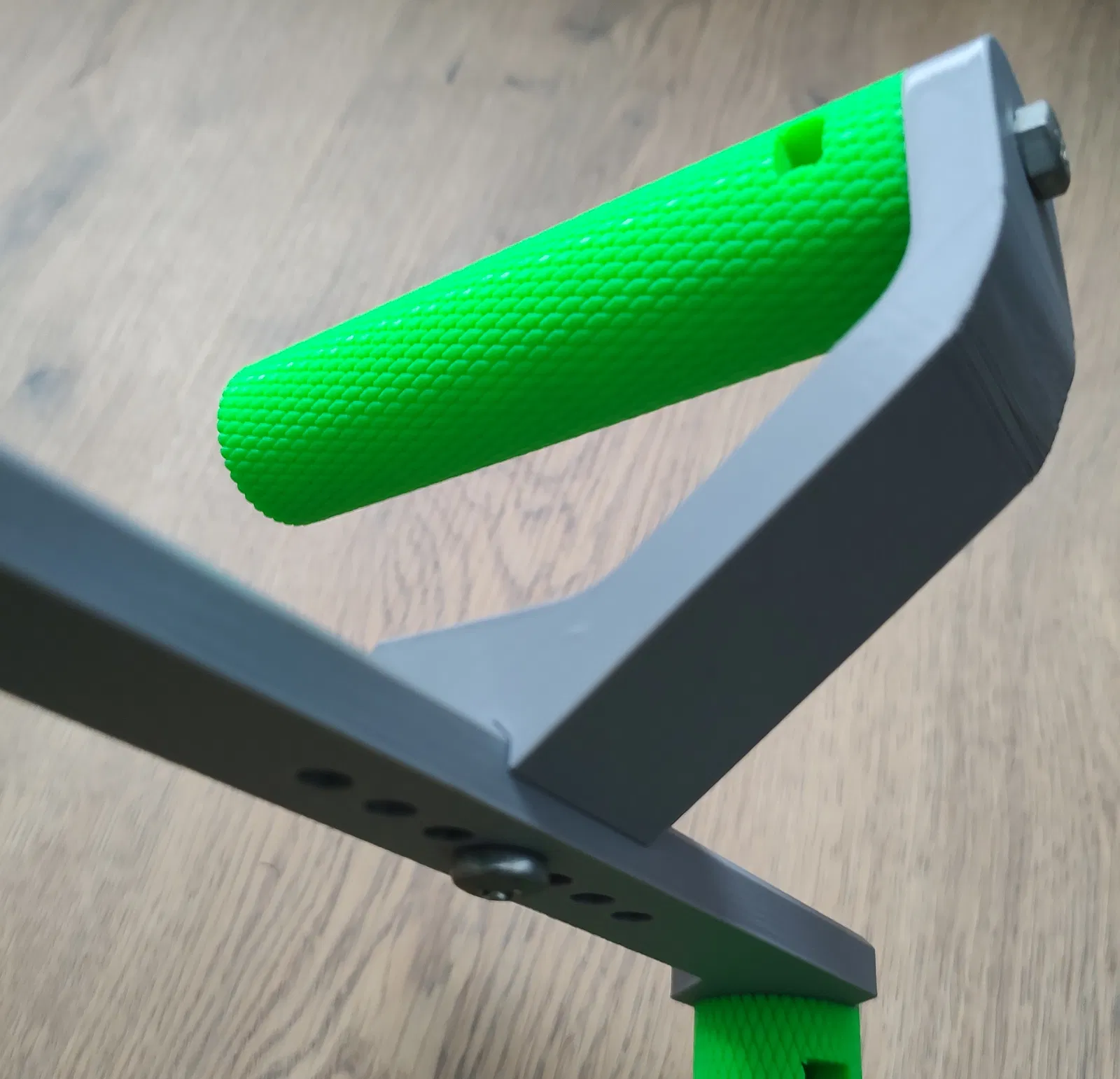 Mình rất thích bộ camera rig cho smartphone . Nhưng nó lại thiếu vài tính năng mà mình muốn có. Tiếc là cái top handle từ không vừa, nên mình tự làm một mẫu tương tự. Phần grip thì mình dùng luôn grip có sẵn của rig và scale file STL khá nhẹ nhàng trực tiếp trong slicer bằng cách đặt nó “chìm” vào build plate.