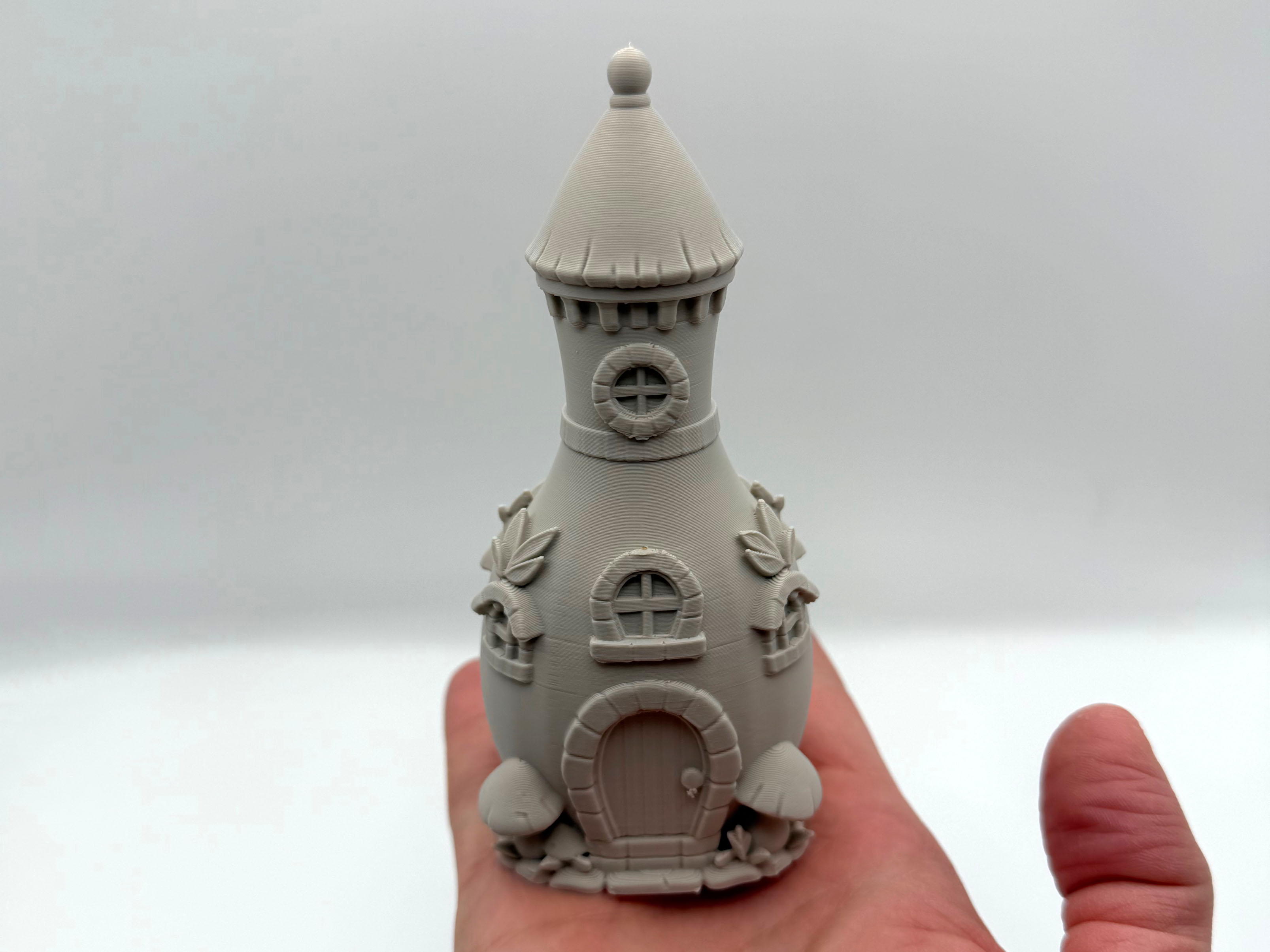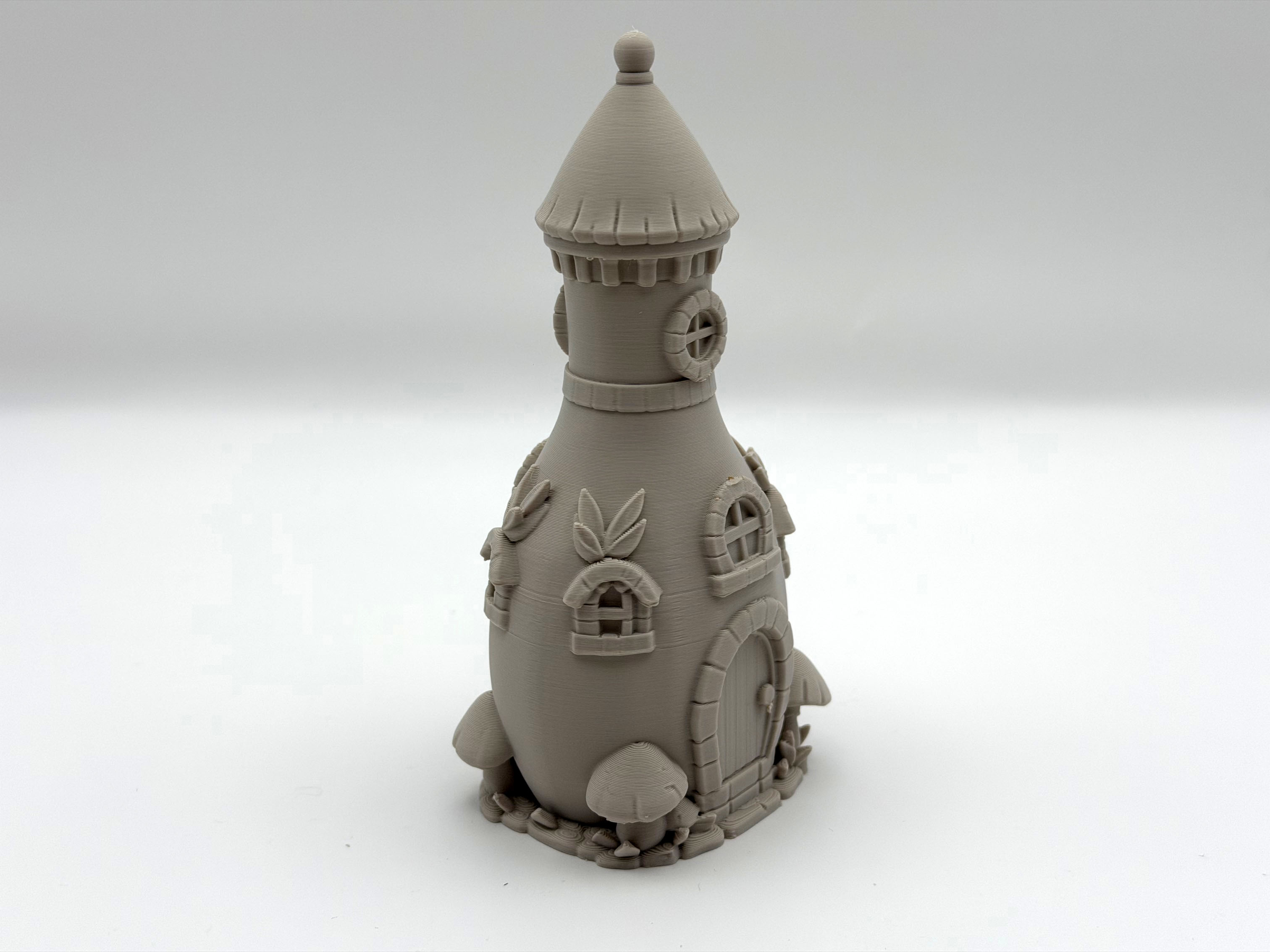 Bowling Fairy House là mẫu nhà tiên phong cách whimsical, hợp để trang trí kệ hoặc góc vườn. Cần rất ít support; dùng organic supports và chỉnh Z-top height giúp tháo support gọn, dễ và sạch.