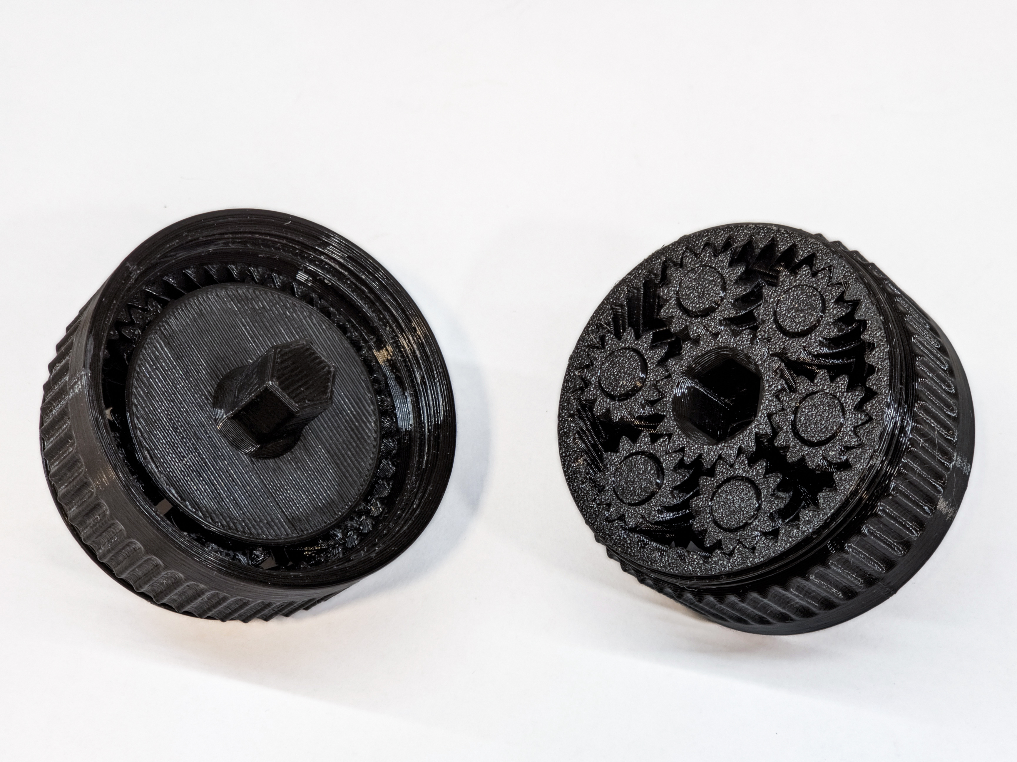 Đây là mẫu khá khó để in cho đẹp. Muốn in được cần máy đã tune kỹ. Lớp đầu (first layer) cực kỳ quan trọng. Nếu dung sai (tolerance) không đạt thì các bánh răng có thể dính liền với nhau. Phần planetary carrier cần bridging khá nhiều.