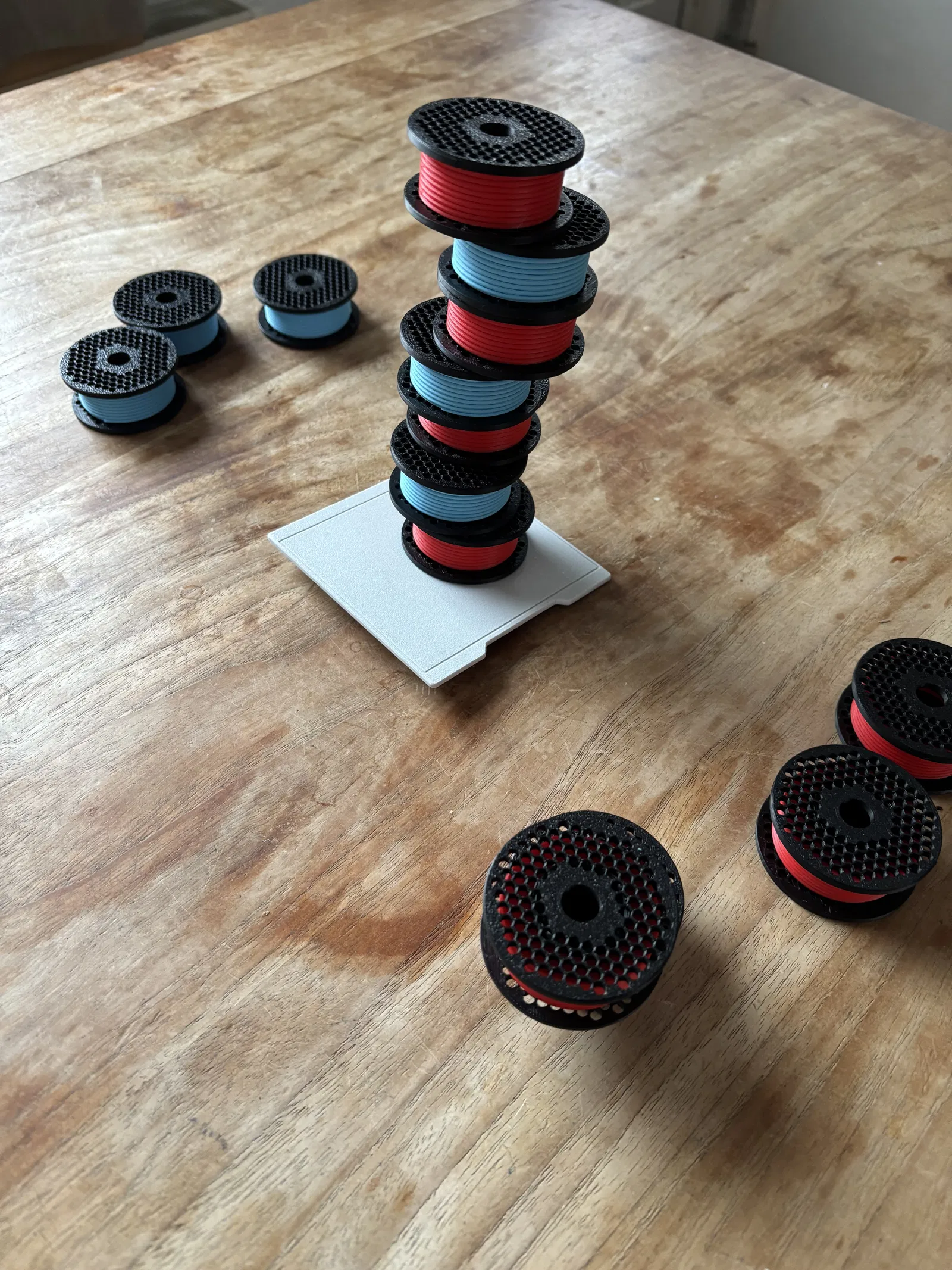 Xếp một tòa tháp cao bằng các cuộn chỉ trên tấm đế lung lay trước khi nó sụp đổ. Bắt đầu với một tấm đế trống và lần lượt đặt xuống một cuộn chỉ. Nếu tháp sụp đổ, bạn thua. Bạn sẽ cần khoảng 9 cuộn chỉ cho mỗi người chơi (tổng cộng 18 cuộn) để chơi trò này.