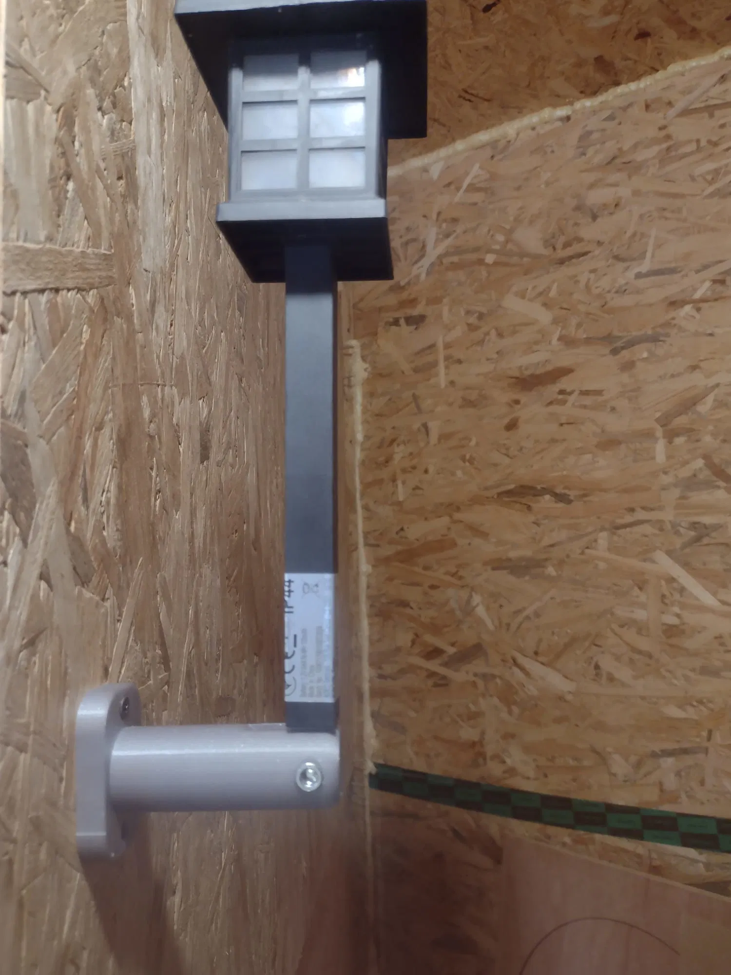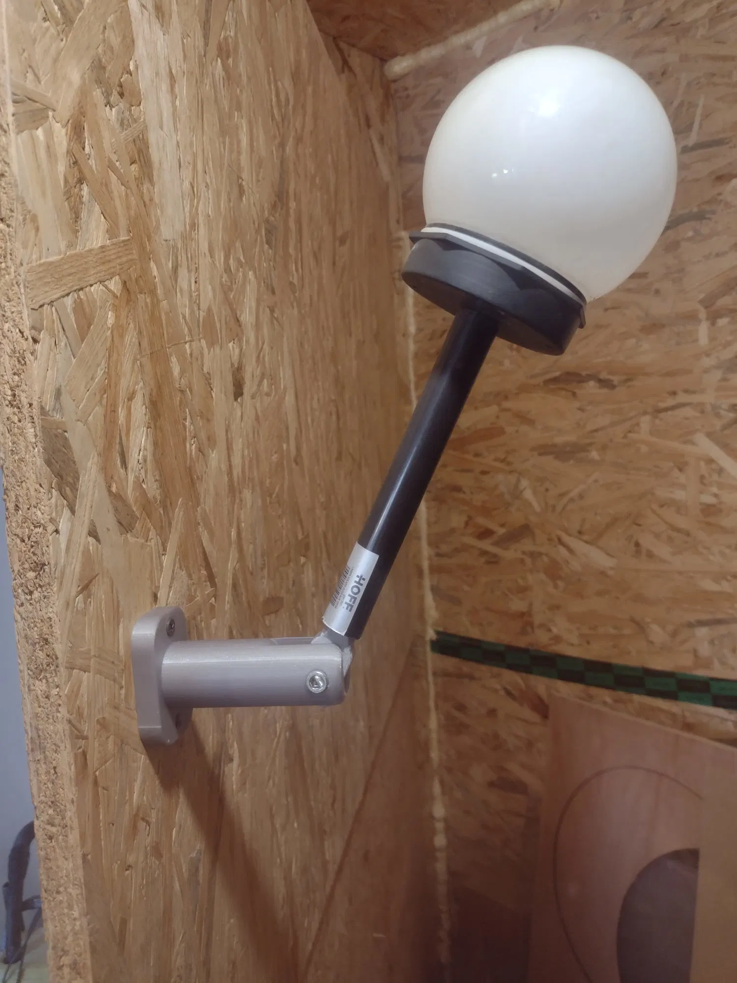 Giá đỡ đèn sân vườn dạng khớp, cho phép chỉnh đèn theo góc mong muốn. Khi lắp cần ốc M6 dài 3 cm (đầu tua vít hoặc lục giác) và ê-cu M6; chiều cao trụ đèn có thể chỉnh bằng cách cắt.