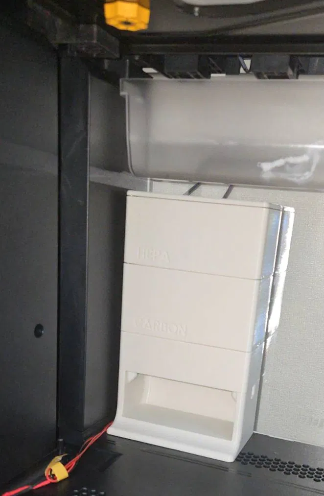 Bản Bento Box Air Filter được chỉnh sửa để vừa với Snapmaker U1. Phần gờ móc khá chắc, nhưng vẫn nên dán thêm băng keo phía sau để yên tâm hơn khi sử dụng.