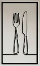 Bộ Tranh Treo Tường Bếp Tối Giản | Cà Phê, Rượu Vang, Dao Nĩa | Line Art | No Supports