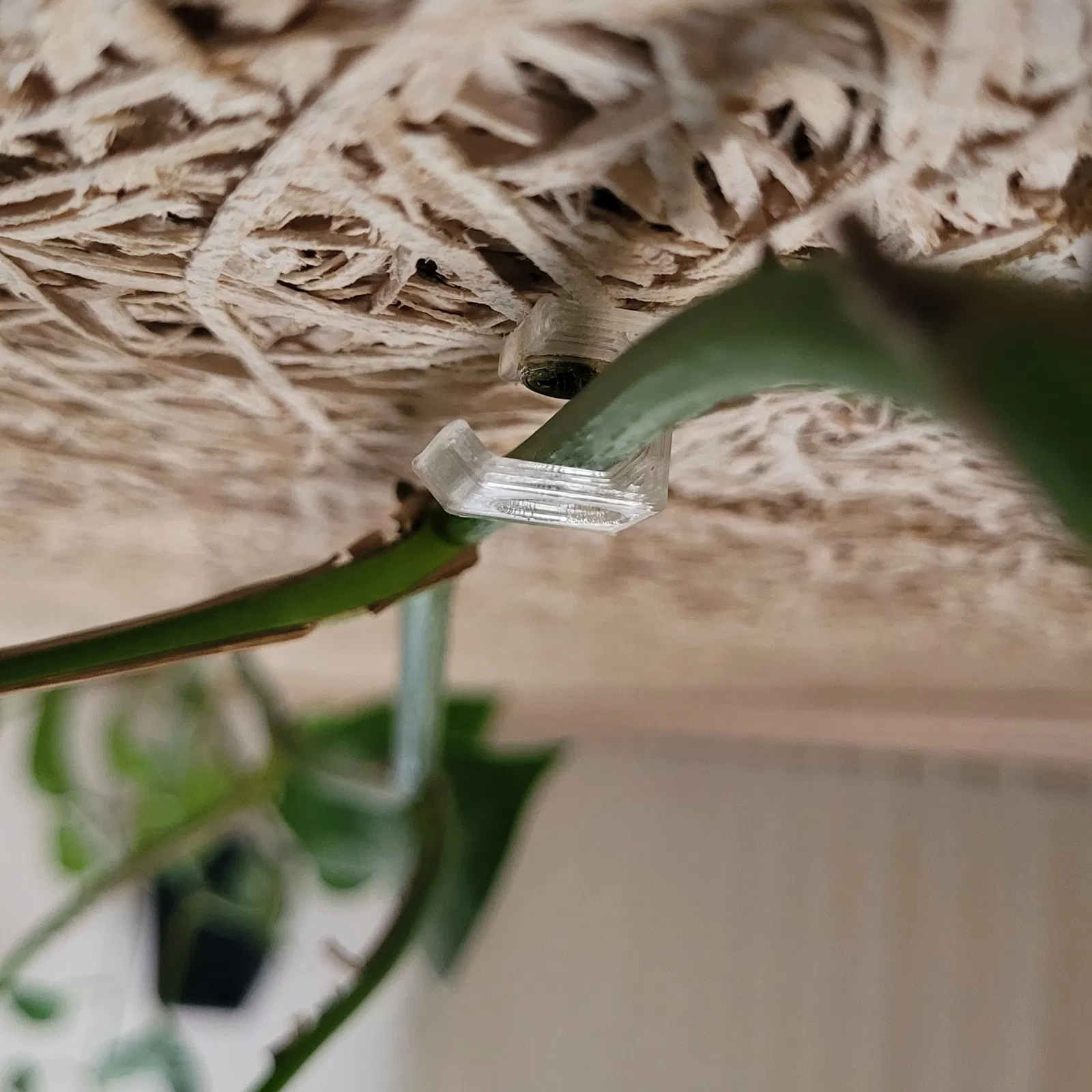 Tôi đã gặp một vấn đề treo các nhánh của cây leo trên trần nhà. Tôi bắt đầu thiết kế một móc áo hình tròn, nhưng sau một số bản in thử nghiệm, nó đã phát triển thành một ý tưởng đơn giản và dễ sử dụng hơn. Mái nhà của tôi là sợi gỗ và xi măng, vì vậy tôi có thể dễ dàng buộc chặt các mảnh này bằng một vít gỗ. Tôi đã thấy cách này tạo điều kiện truy cập vào vít trong các mô hình móc treo và ngăn kéo cáp khác nhau, tôi thấy nó rất thực tế.