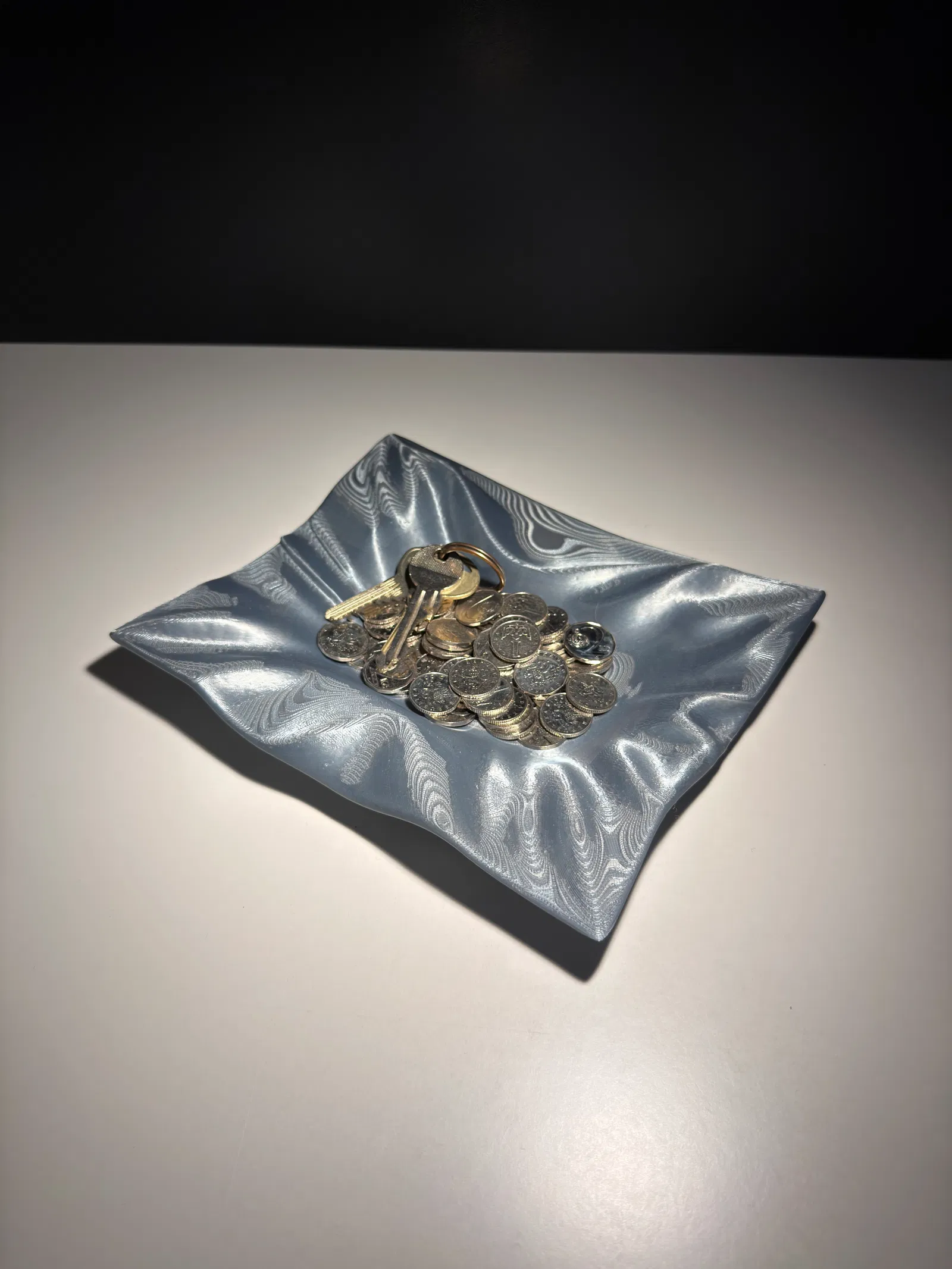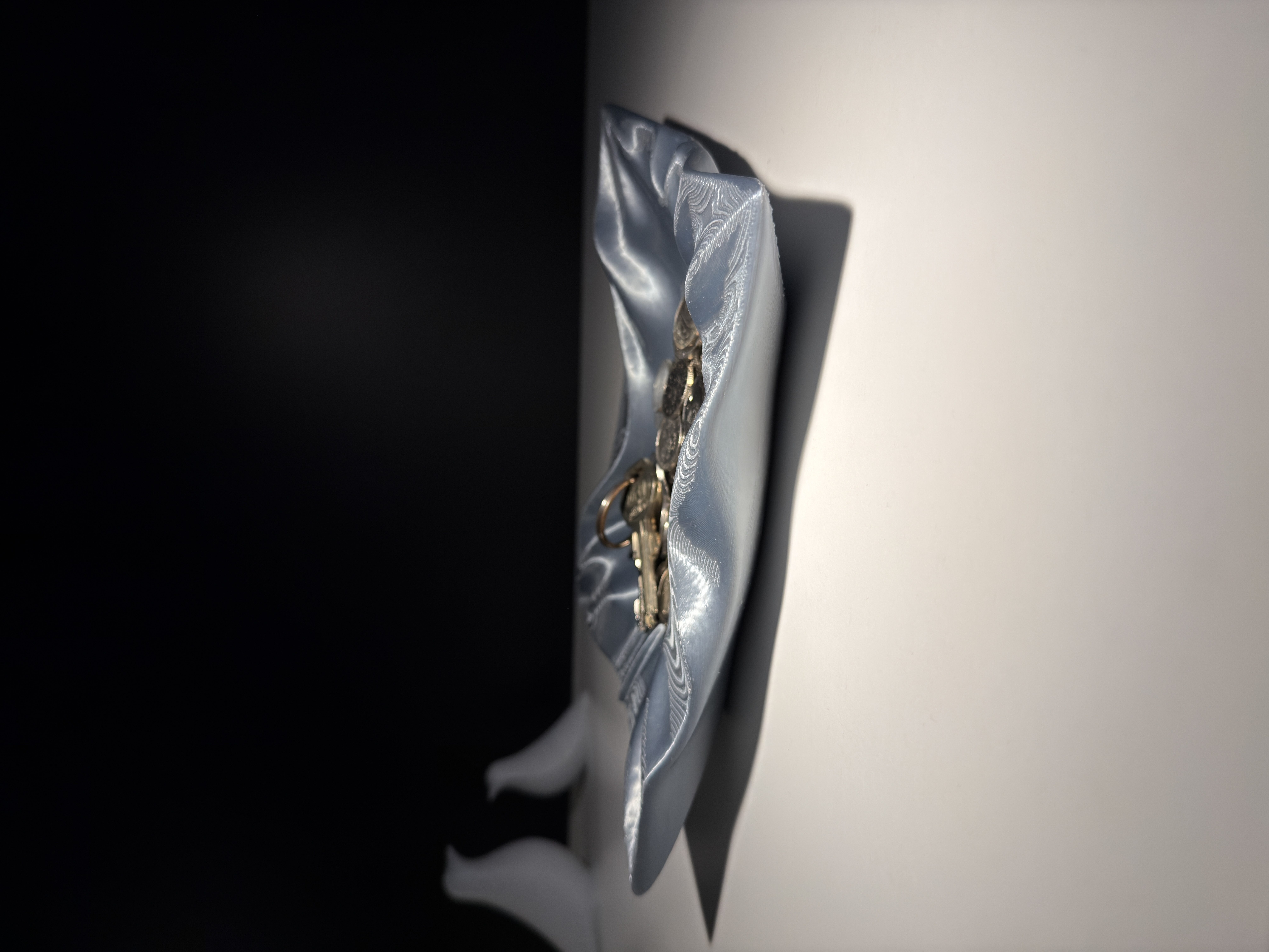 Tô/khay điêu khắc Draped Catchall Bowl lấy cảm hứng từ vải rũ hoặc tấm kim loại uốn cong, có nếp gấp tự nhiên. Phù hợp để đựng chìa khóa, tiền xu và vật dụng nhỏ trên bàn, kệ hay lối vào.
