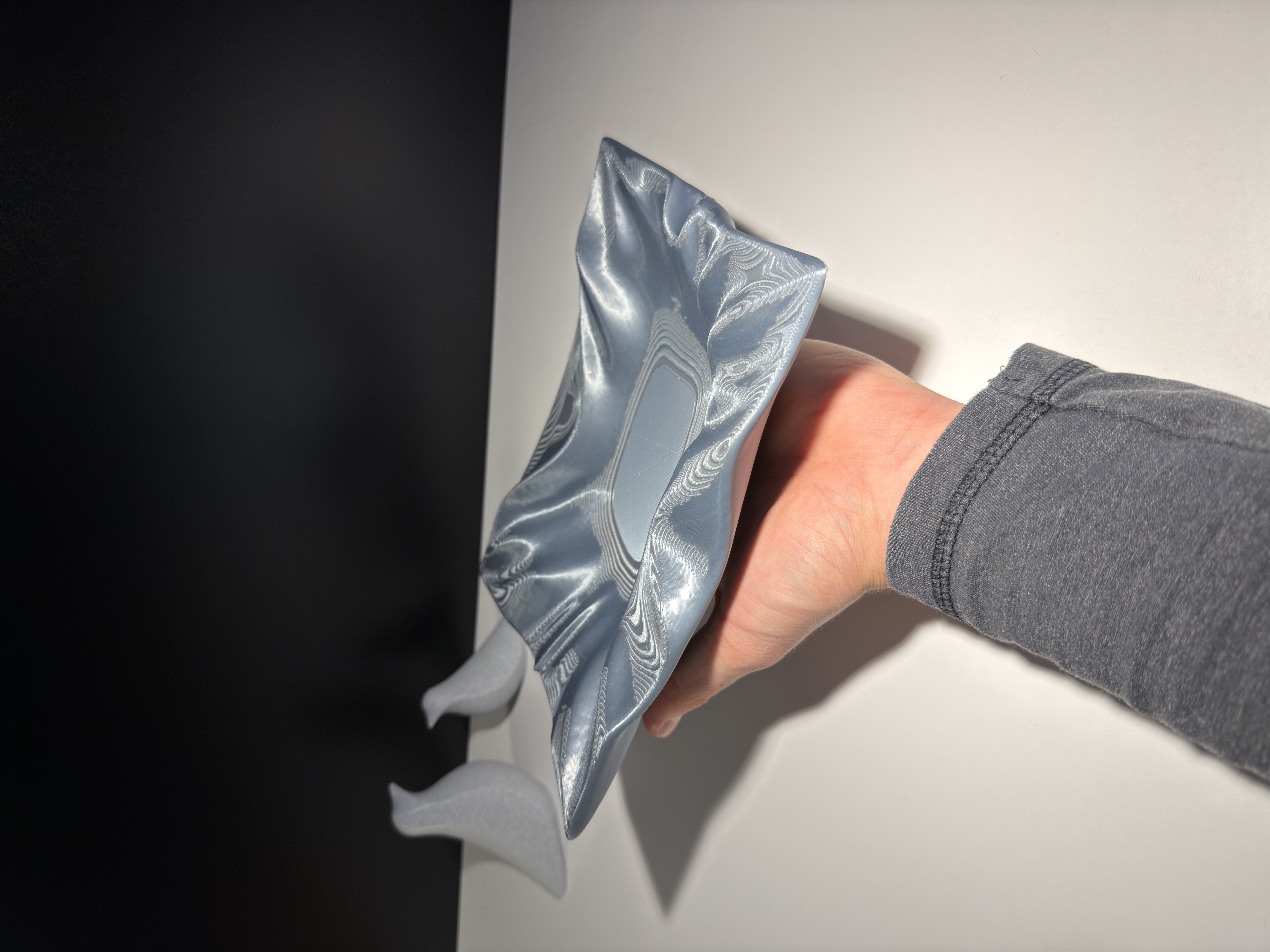 Draped Catchall Bowl là một chiếc tô/khay mang tính điêu khắc, thiết kế để đựng các món đồ dùng hằng ngày như chìa khóa, tiền xu hoặc vật dụng cá nhân nhỏ. Hình dáng lấy cảm hứng từ lớp vải rũ mềm hoặc một tấm kim loại được uốn cong nhẹ, tạo nên các nếp gấp tự nhiên và hiệu ứng phản chiếu tinh tế. Tổng thể cho ra một món đồ vừa tiện dụng vừa có cảm giác hiện đại, nhẹ nhàng, đặt trên bàn làm việc, kệ hoặc khu vực lối vào đều hợp.