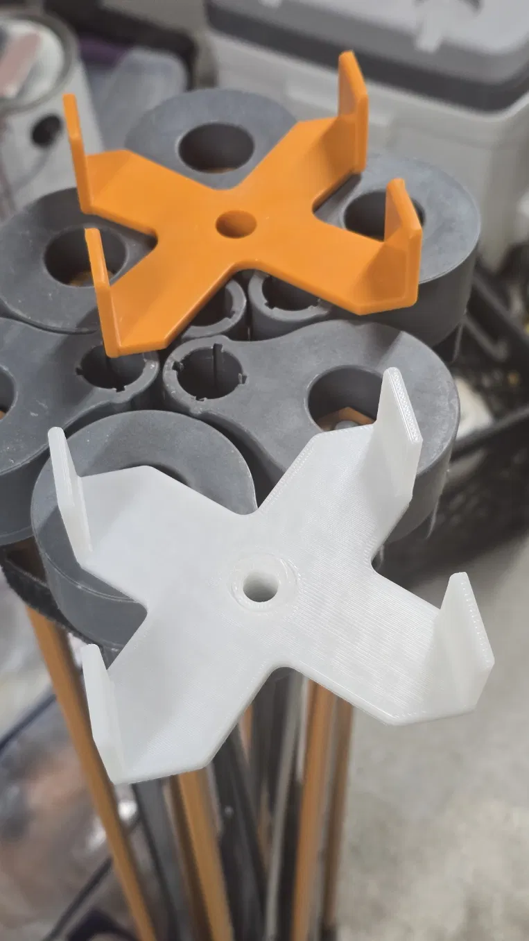 Phụ kiện X-Cups cho bàn Bora Centipede Workbench với các phần Screw-Together. Cylinder vặn ren trực tiếp vào bracket, dung sai chặt để lắp cố định. In thử bằng ABS với nozzle 0.6mm, không cần supports/brims.