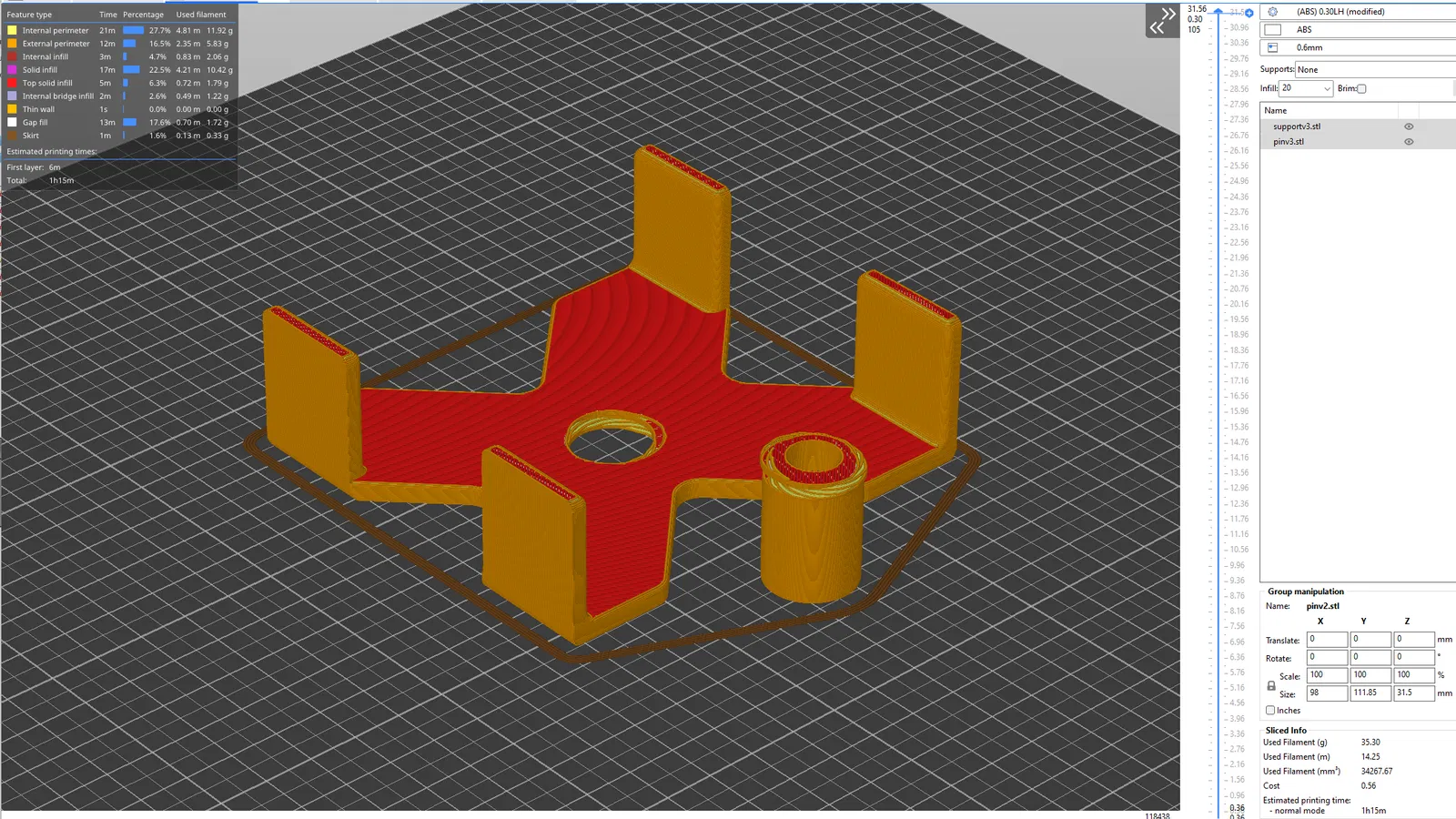 Mình in cái này không cần supports/brims vẫn ổn, tầm khoảng 1 tiếng là xong.