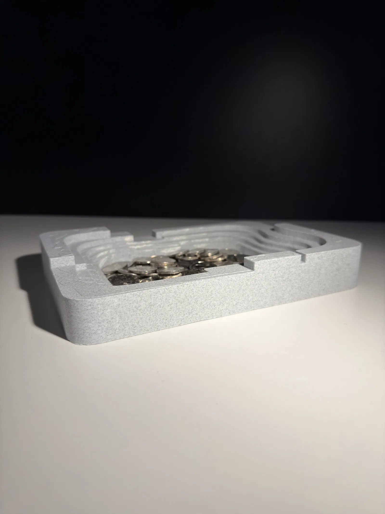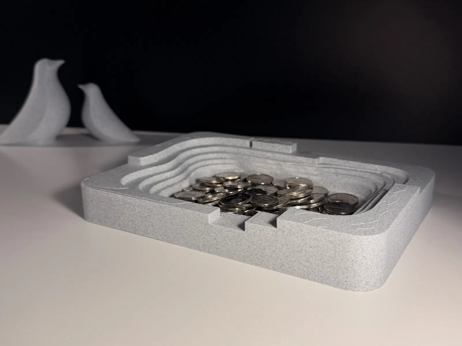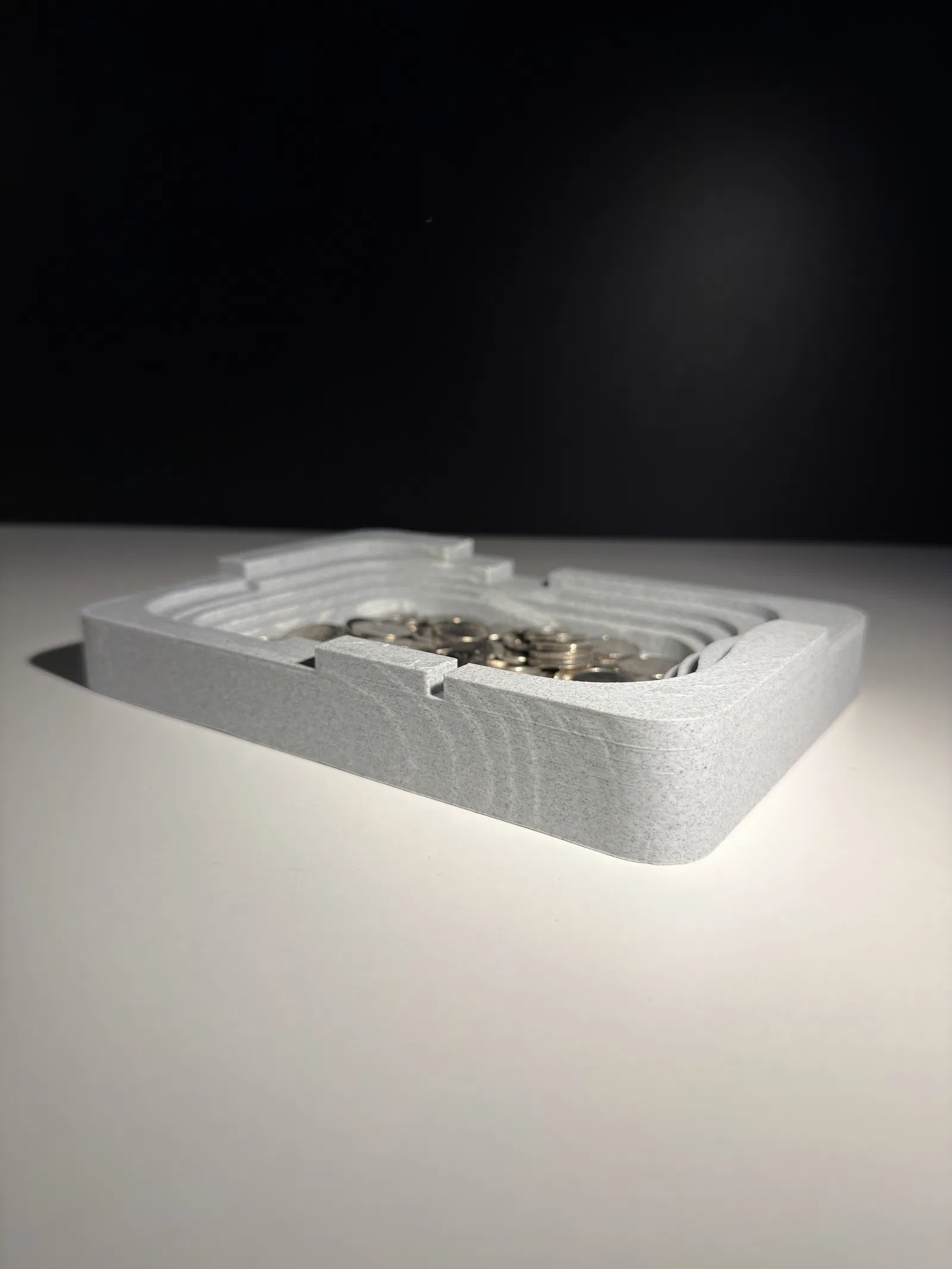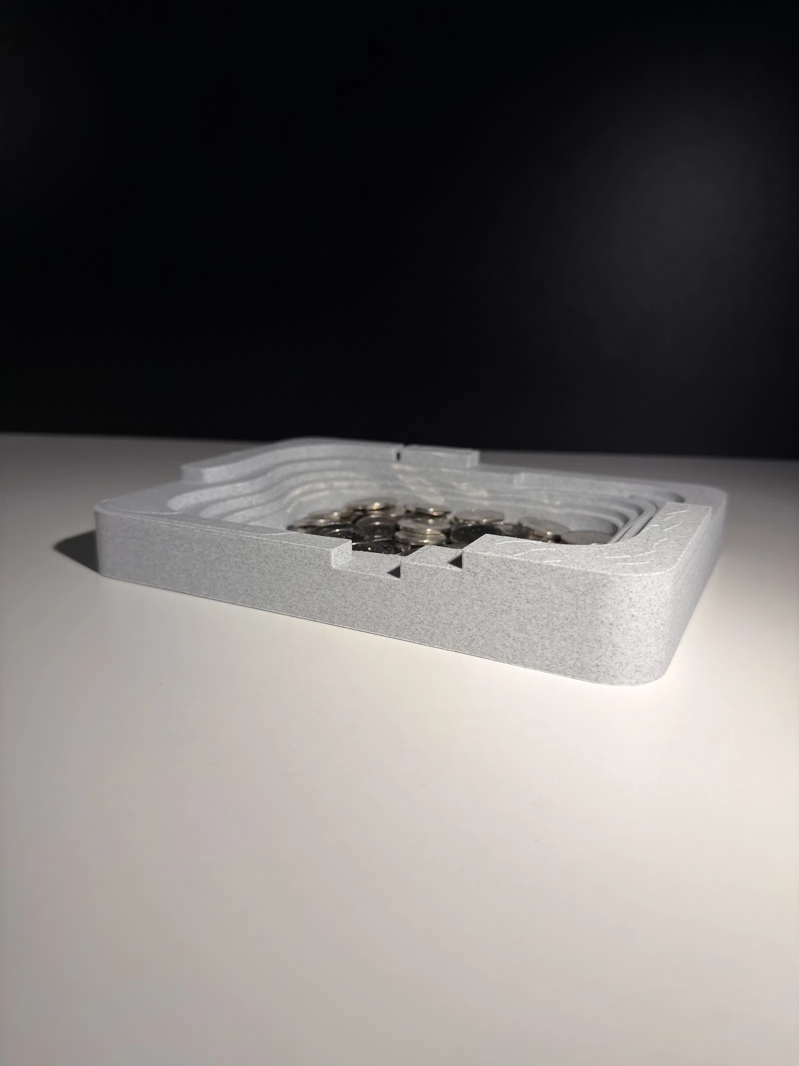 Modern Catchall Bowl là một khay đựng đồ gọn gàng, phong cách kiến trúc, nổi bật với hình khối hình học sắc nét. Phần lòng khay dạng bậc và các chuyển tiếp dứt khoát tạo cảm giác có cấu trúc, hiện đại, lấy cảm hứng từ các đường nét kiến trúc. Thiết kế để đựng chìa khóa, tiền xu và những món đồ lặt vặt hằng ngày, mẫu này vừa là đồ organizer tiện dụng, vừa là món decor tối giản cho bàn làm việc, kệ, hoặc khu vực để đồ ở lối vào.