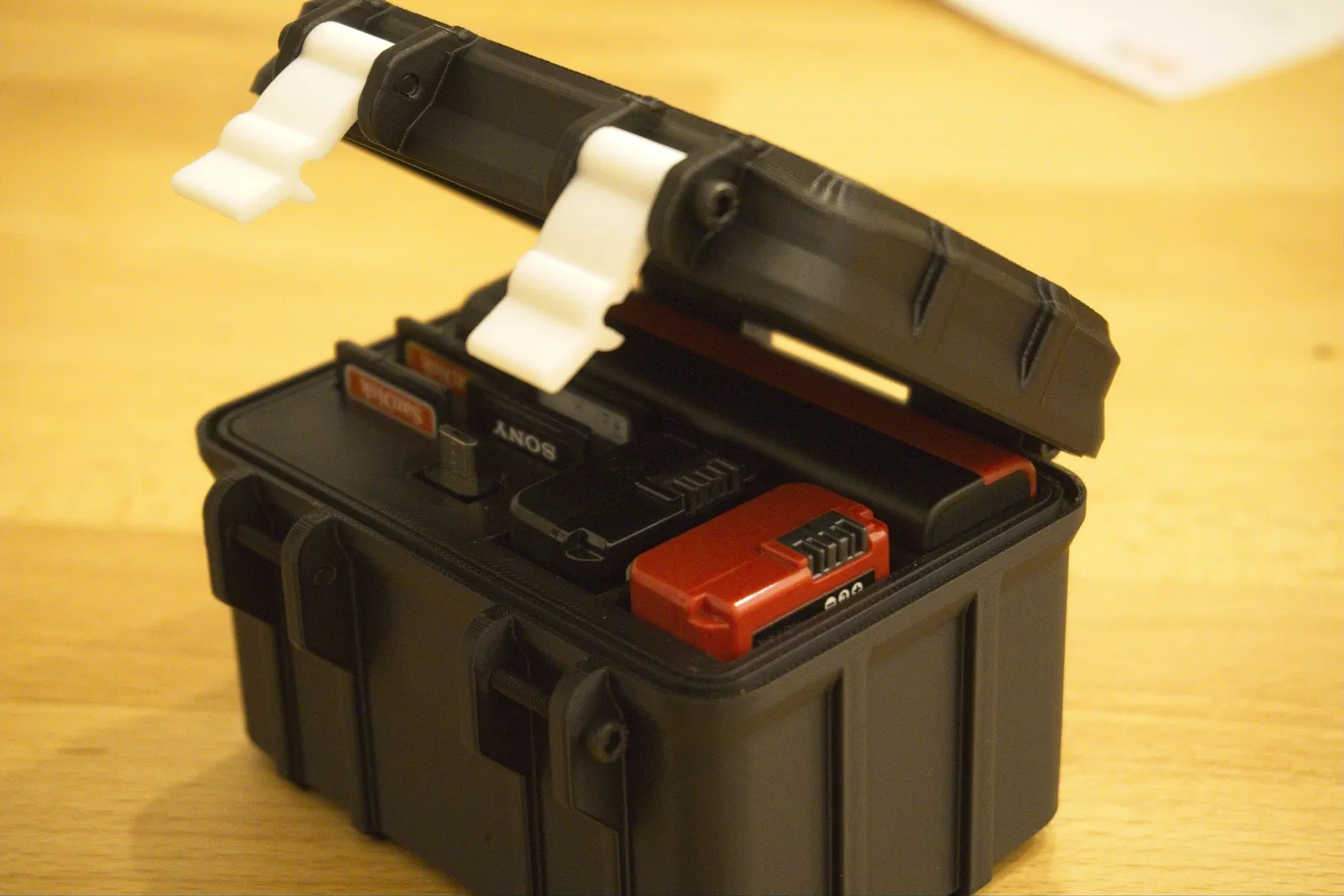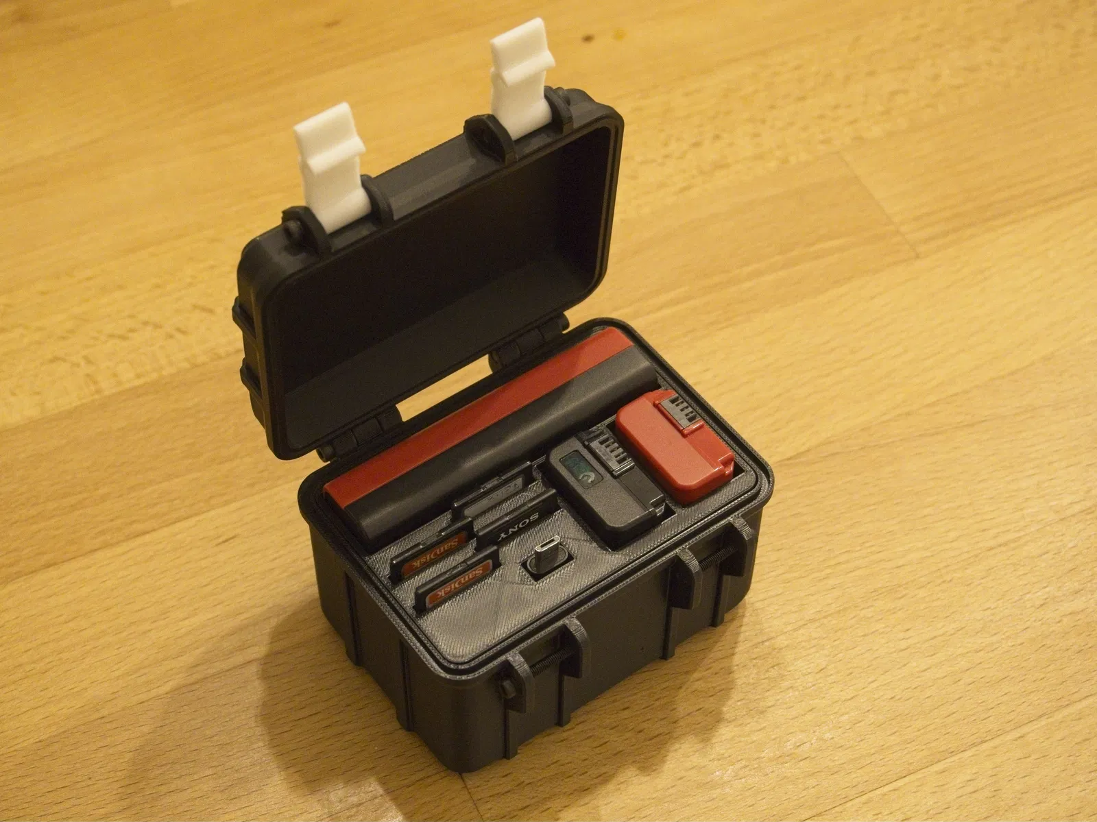 Hộp rugged bảo vệ, thiết kế để đựng sạc BAXXTAR cho pin Sony NP-FW50, kèm 2 pin NP-FW50, 4 thẻ SD và 1 adapter USB-C sang Micro-USB. Gọn gàng, tiện mang theo khi đi chụp.