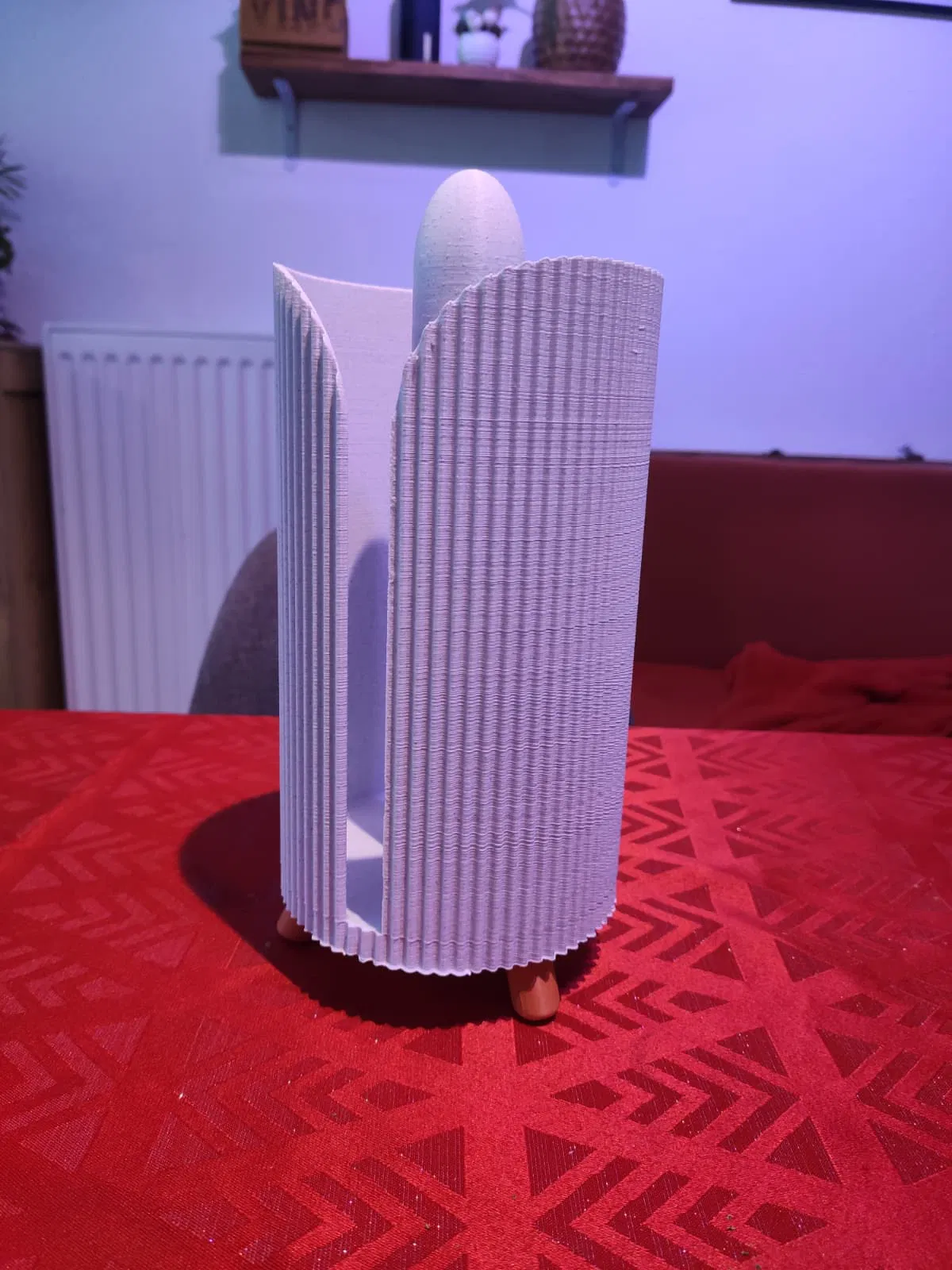 Bộ nhả giấy lau thiết kế đẹp, có chân dán adhesive. In bằng PLA, không cần supports. Khuyến nghị in 2 màu để nổi bật hơn; lỗ tối đa 36mm và độ dày cuộn giấy tối đa 40mm.