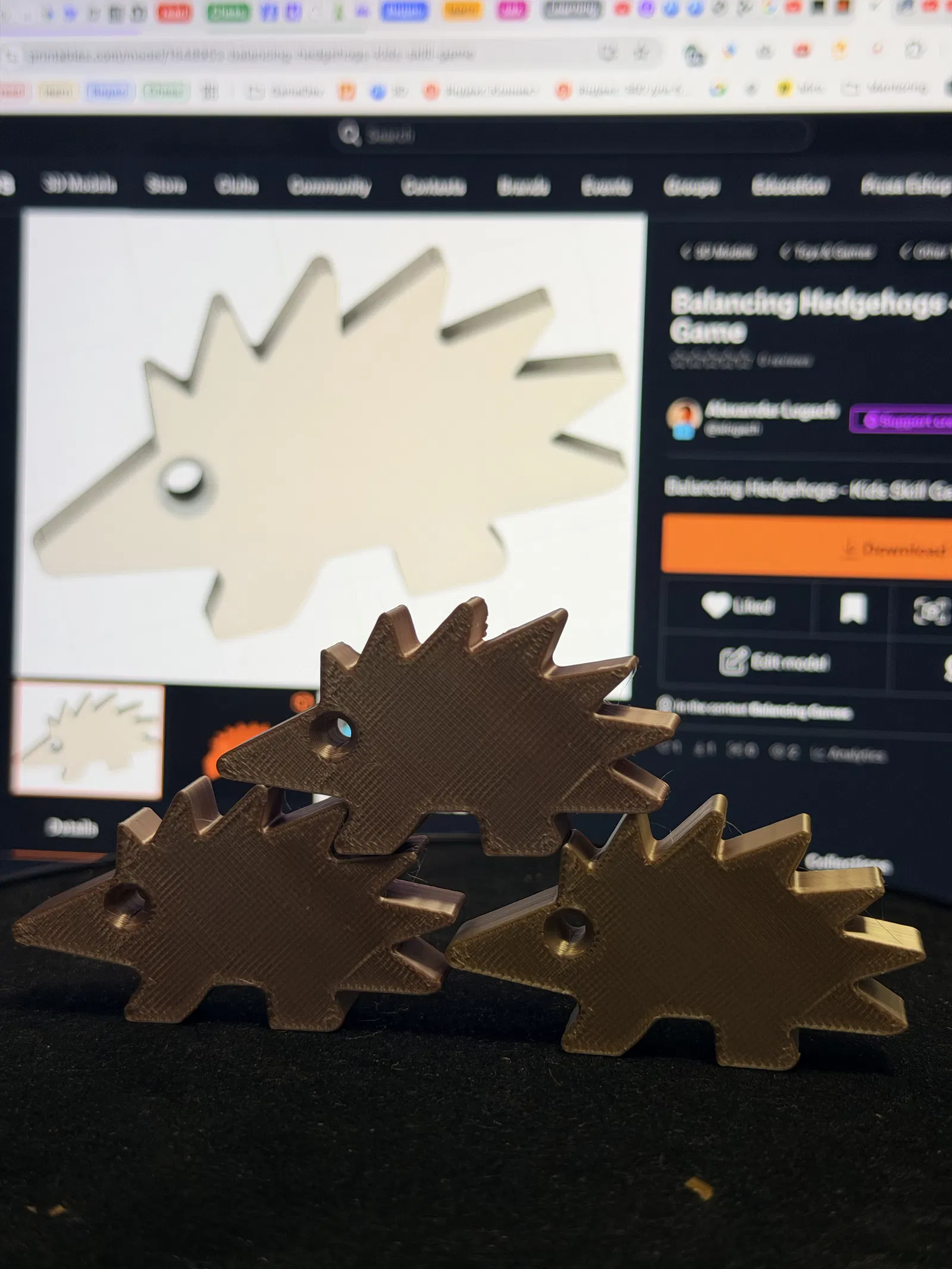 Mẫu “Balancing Hedgehogs - Kids Skill Game” là trò chơi khéo tay cho bé: xếp chồng và giữ thăng bằng các chú nhím nhỏ. Tăng infill khi in để nhím nặng hơn, giúp việc xếp dễ hơn.