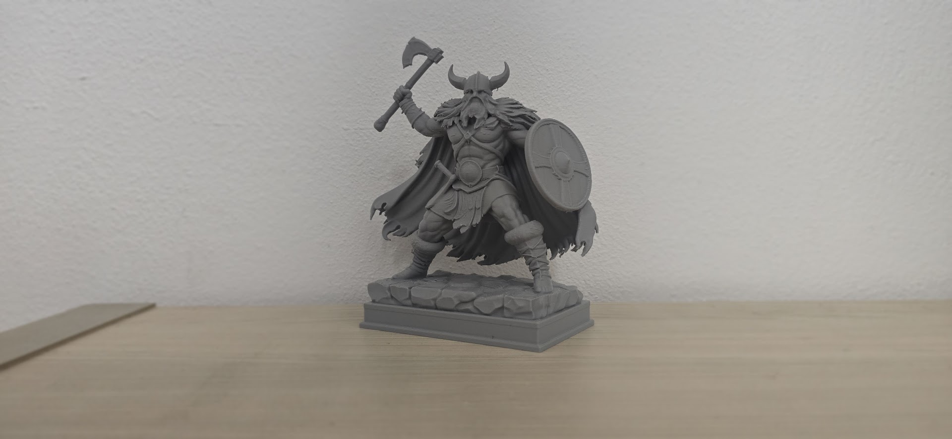 Mẫu 3D chiến binh Viking cầm rìu và khiên tròn, tạo dáng oai phong kiểu chiến binh Bắc Âu. Phù hợp in 3D để trưng bày, làm figurine/miniature hoặc sưu tầm theo chủ đề cổ đại.