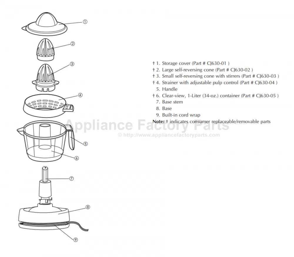 Đây là một bộ phận dành cho máy ép trái cây Black & Decker CJ630 (Model CJ630).
