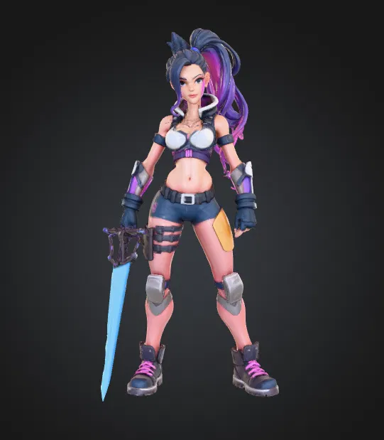 Đây là Valeria, một nữ anh hùng fantasy cầm kiếm, sẵn sàng bước vào trận chiến.