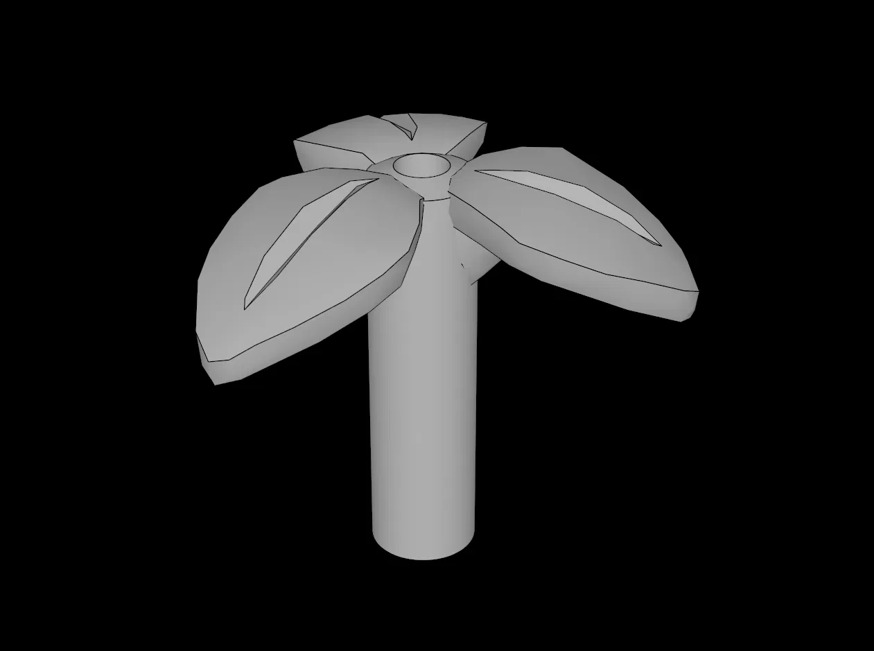 Mẫu 3D này tương thích với hệ thống LEGO, mô phỏng phần thân cây (37695.dat) với 3 lá, có lỗ bar và lỗ pin để gắn lắp linh hoạt trong các mô hình và MOC.