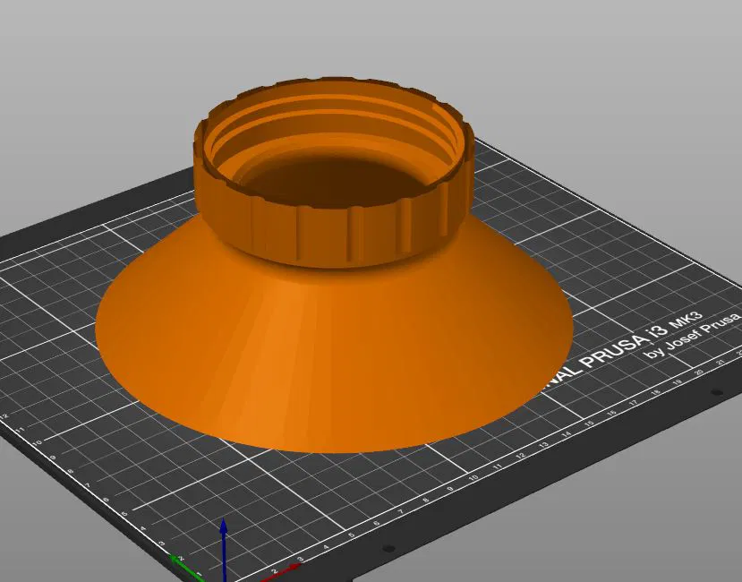 Phễu vặn ren dành cho hũ thủy tinh wide mouth kiểu Mason jar. In với đầu phễu đặt trên build plate, không cần support. Khuyến nghị in PET-G ở layer height 0.2mm để dùng bền và sạch.