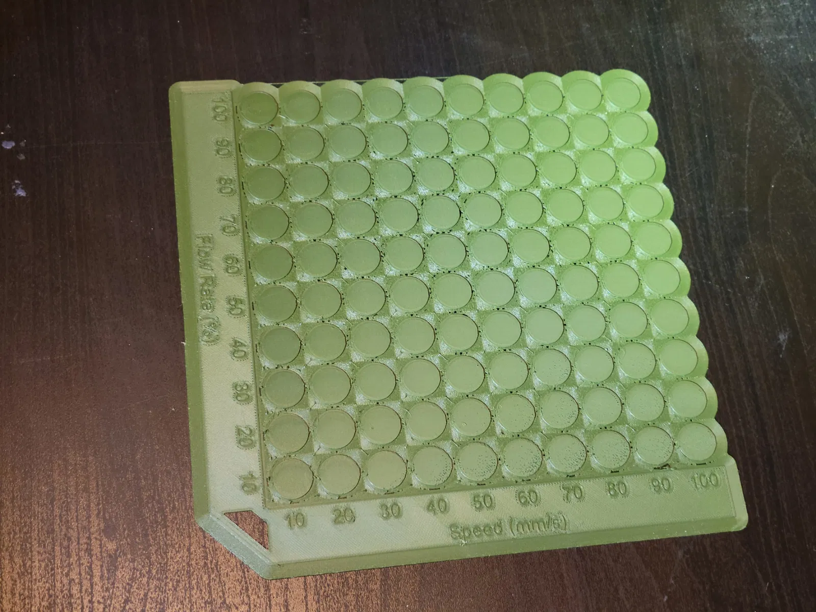 Mẫu test Ironing cho Prusa MK3S có thêm nhãn trục tốc độ (mm/s) và flow rate (%), đồng thời đổi layout chấm test theo trục x-y chuẩn. Có thể xóa Axis_Guide.stl trong PrusaSlicer để rút ngắn thời gian in.