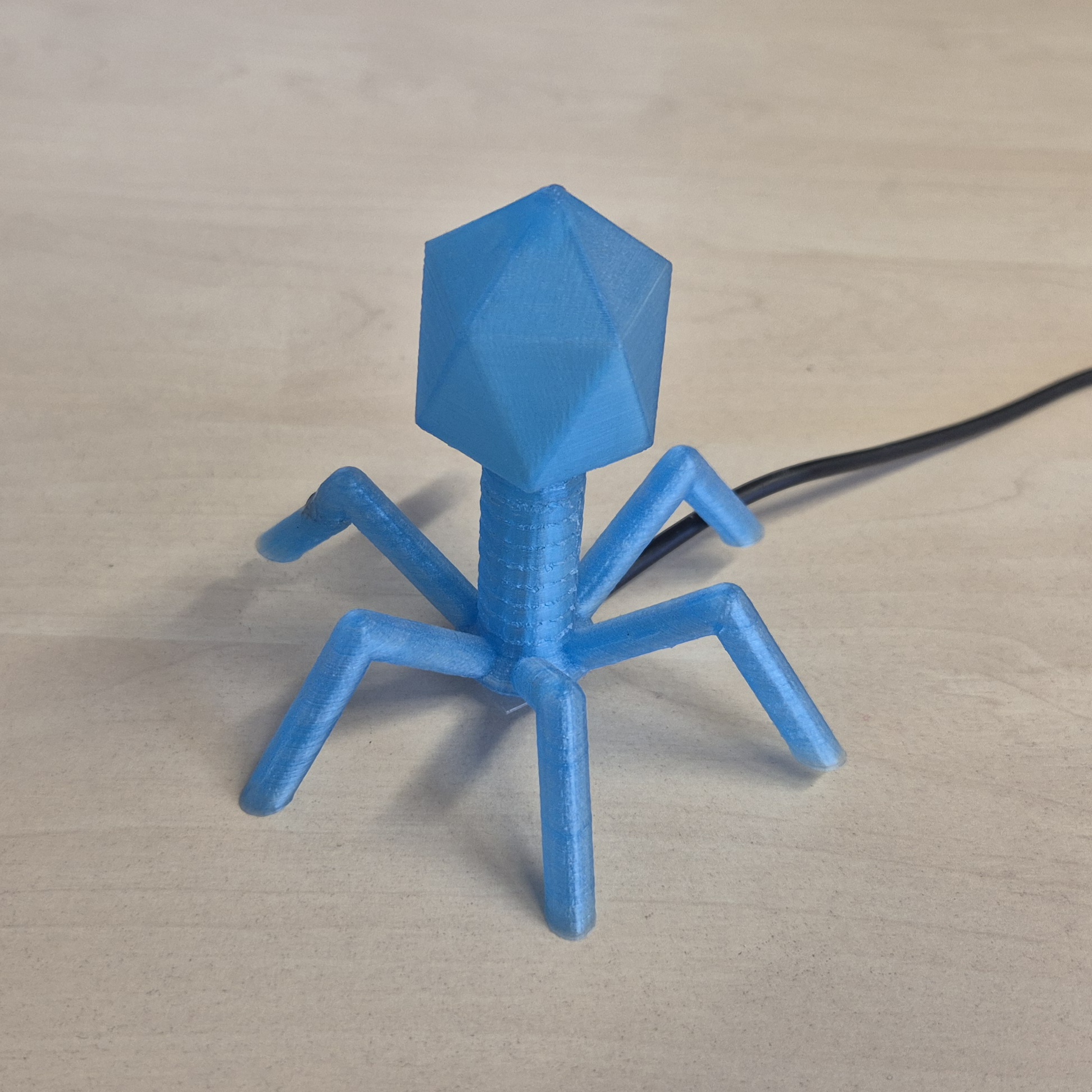 Mẫu đèn đơn giản mà đẹp, lấy cảm hứng từ bacteriophage. Chỉ cần gắn một LED cấp nguồn USB (hoặc nguồn khác). Có thể scale lên để vừa LED strip/panel/module lớn hơn; có lựa chọn đáy dùng pin hoặc đi dây.