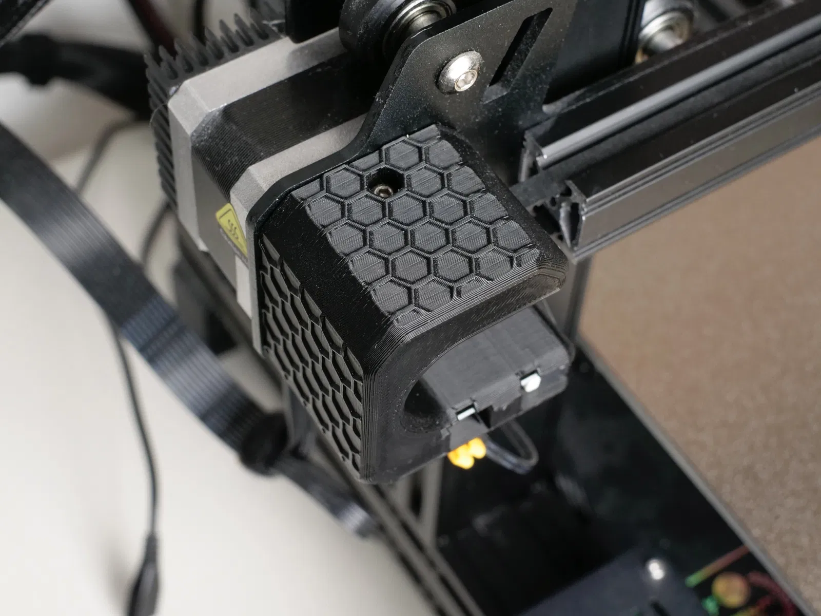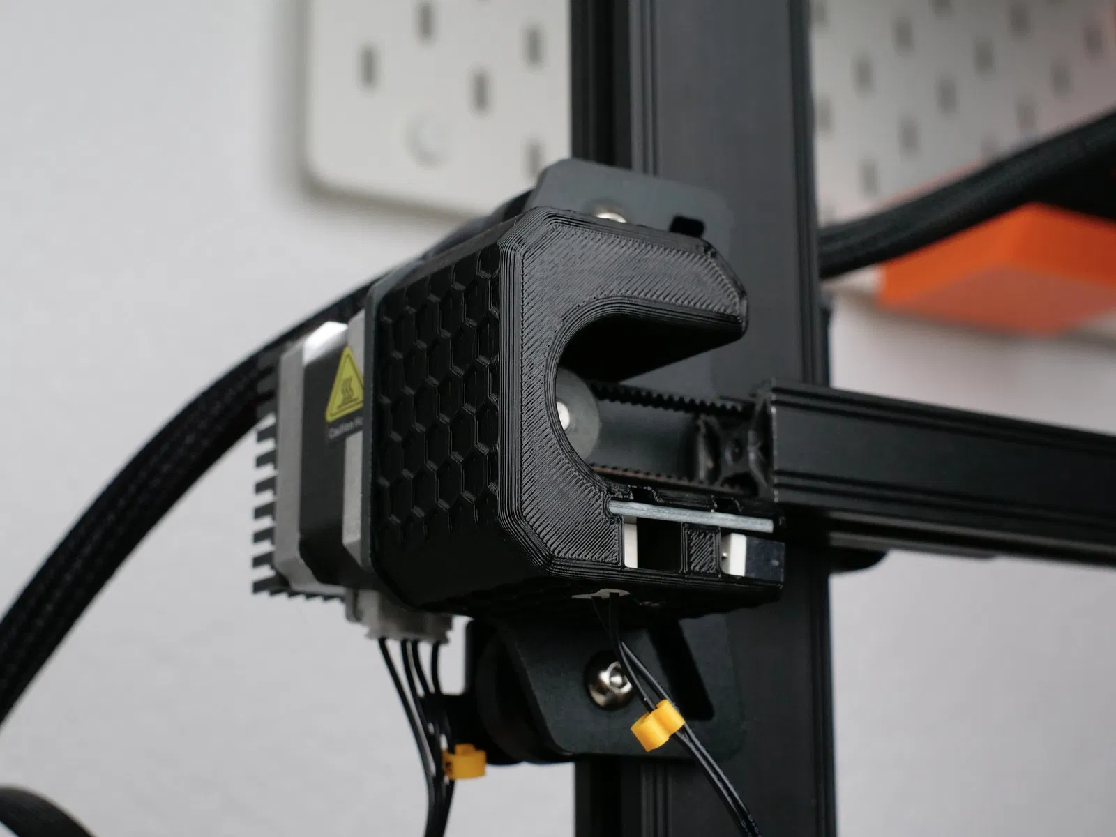 Đây là một bản X-axis endstop cải tiến, giúp tăng hành trình trục X lên một mức khá đáng kể. Nhờ vậy bạn có thể, ví dụ như gắn purge bucket hoặc nozzle brush ở phía bên trái của bàn in. Endstop mới cũng cho bạn nhìn rõ hơn pulley và belt của trục X.