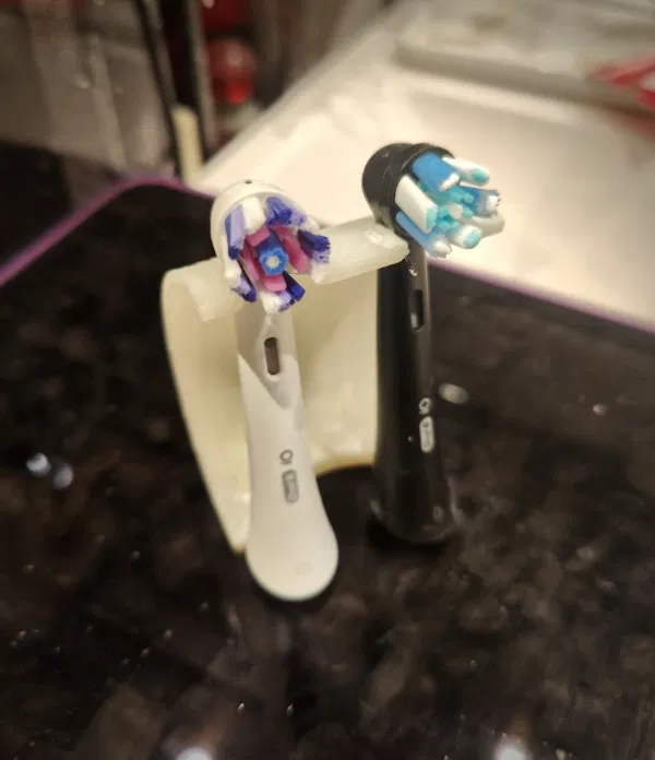 Kệ đỡ đầu bàn chải đánh răng đơn giản và chắc chắn cho 2 đầu bàn chải điện (Oral-B thường và iO). Gợi ý dùng height modifier để tăng infill phần đáy cho ổn định hơn, kèm file Fusion 360 để remix.