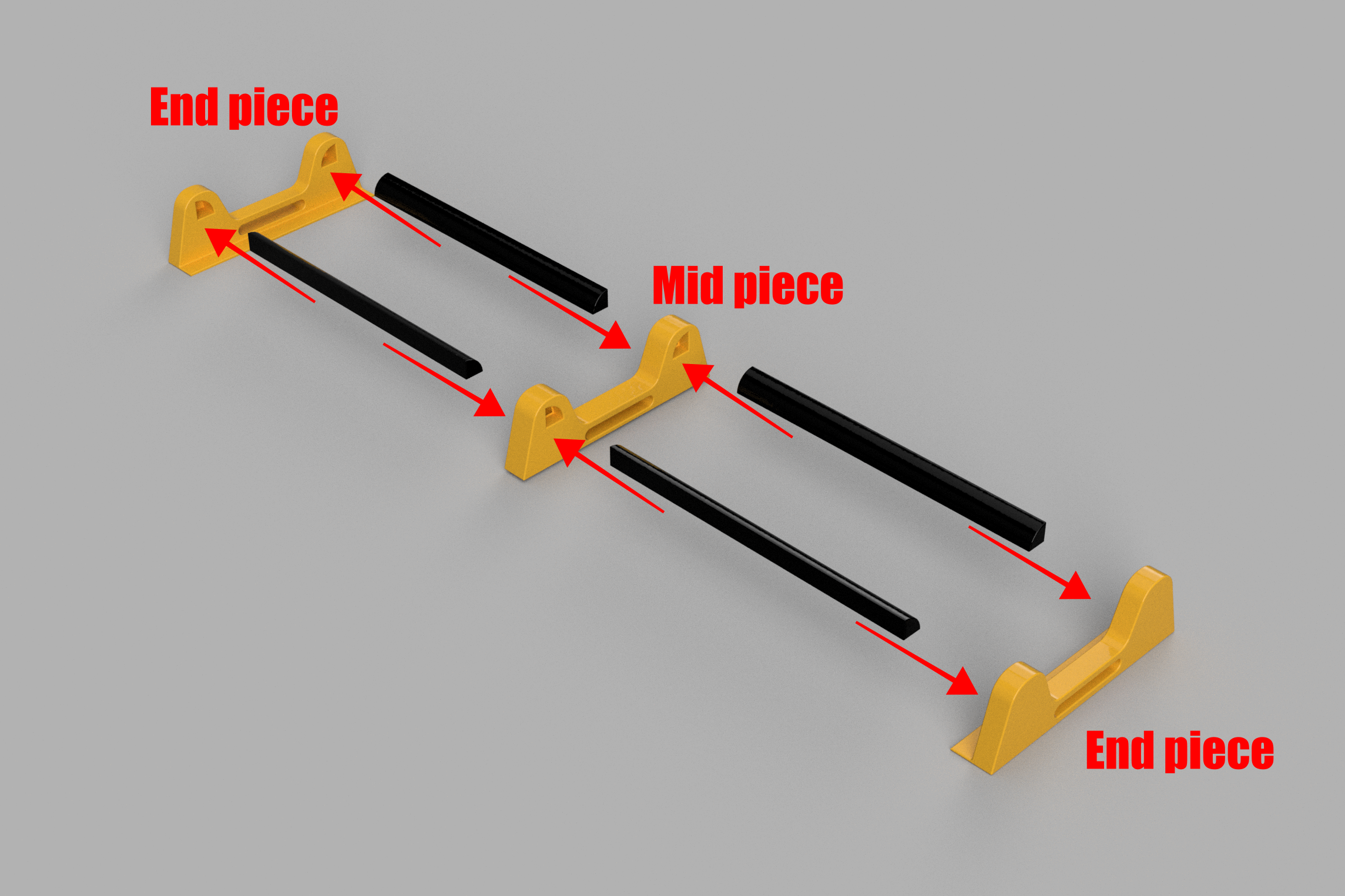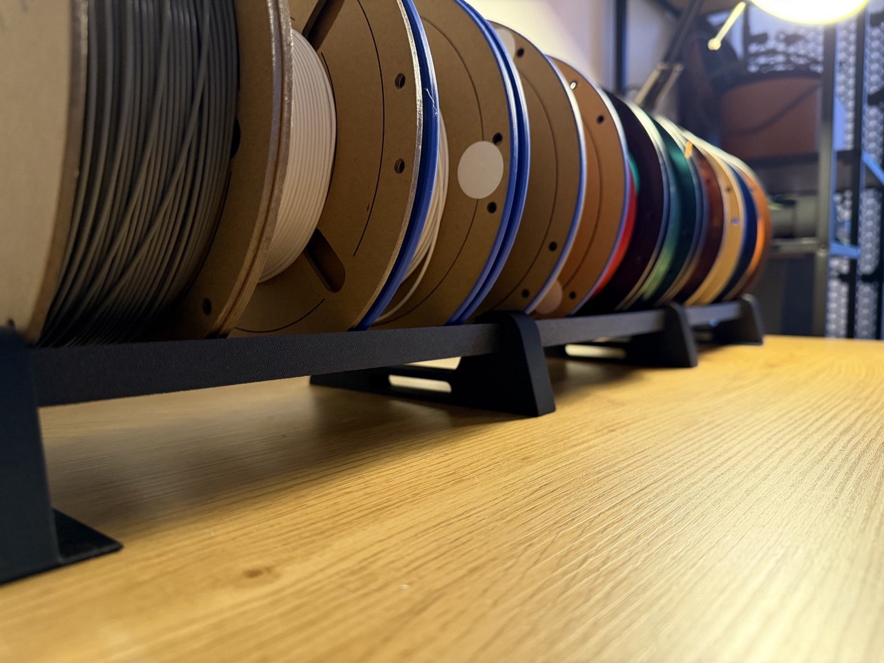 Kệ để filament in hoàn toàn (fully printable), có thể nối các đoạn lại với nhau để mở rộng chiều dài theo nhu cầu. Phù hợp làm trạm giữ cuộn filament gọn gàng, dễ sắp xếp.