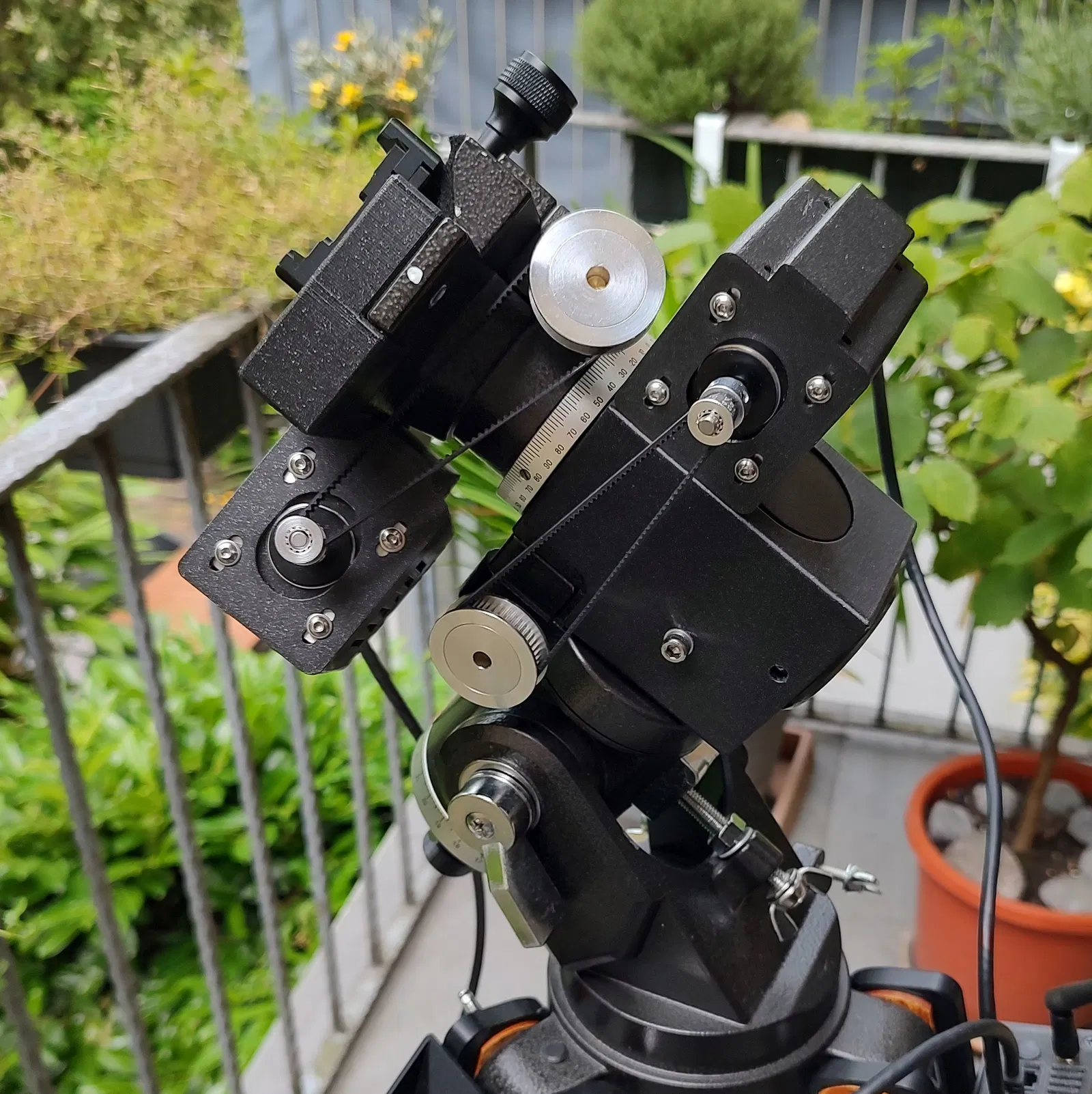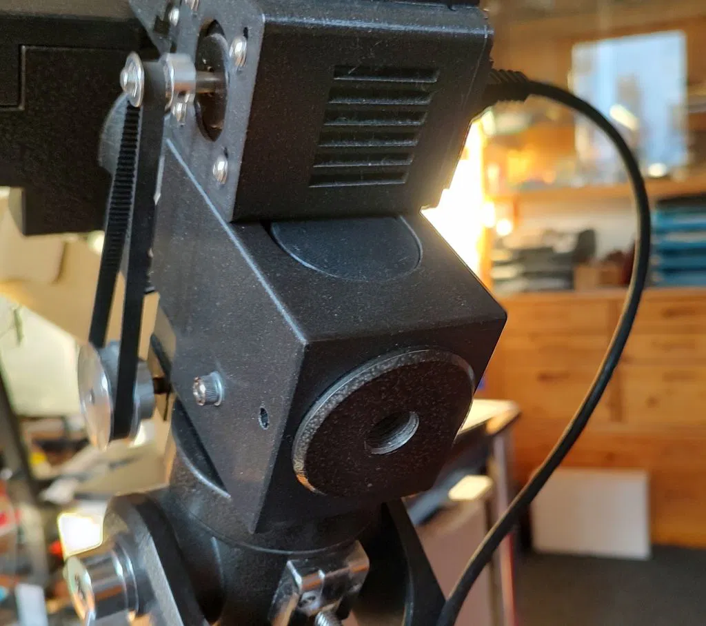 Tuỳ trường hợp có thể phải chỉnh lại vị trí các tay khoá (locking levers) RA và DEC, vì puly đai răng cỡ lớn chạy sát ngang qua.
