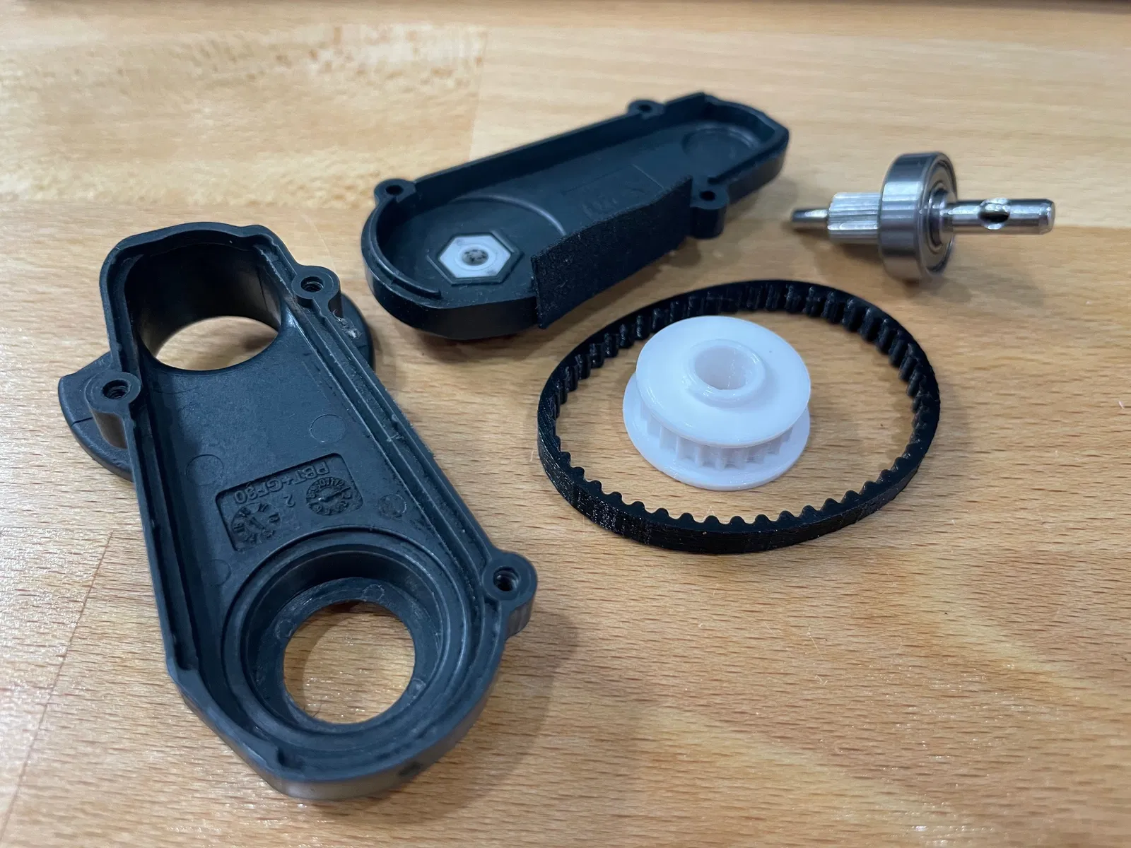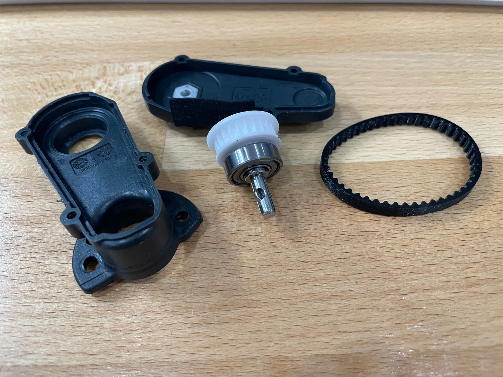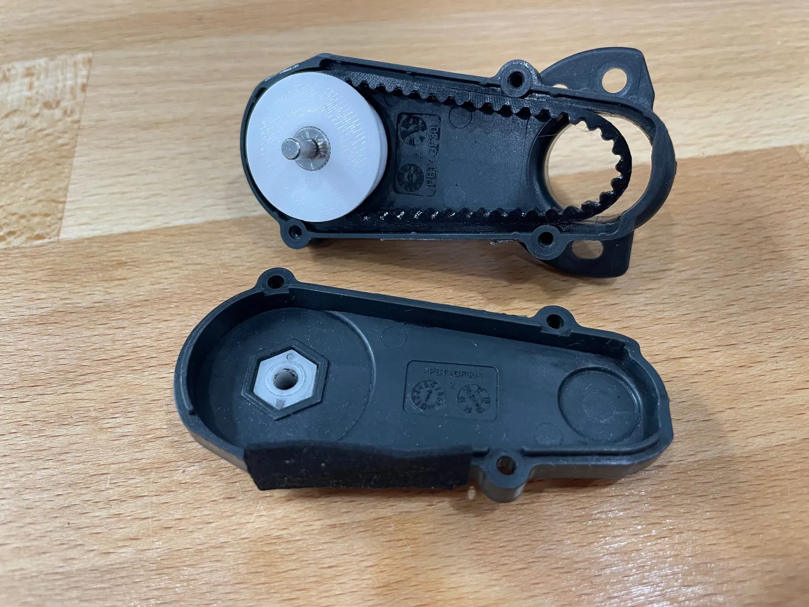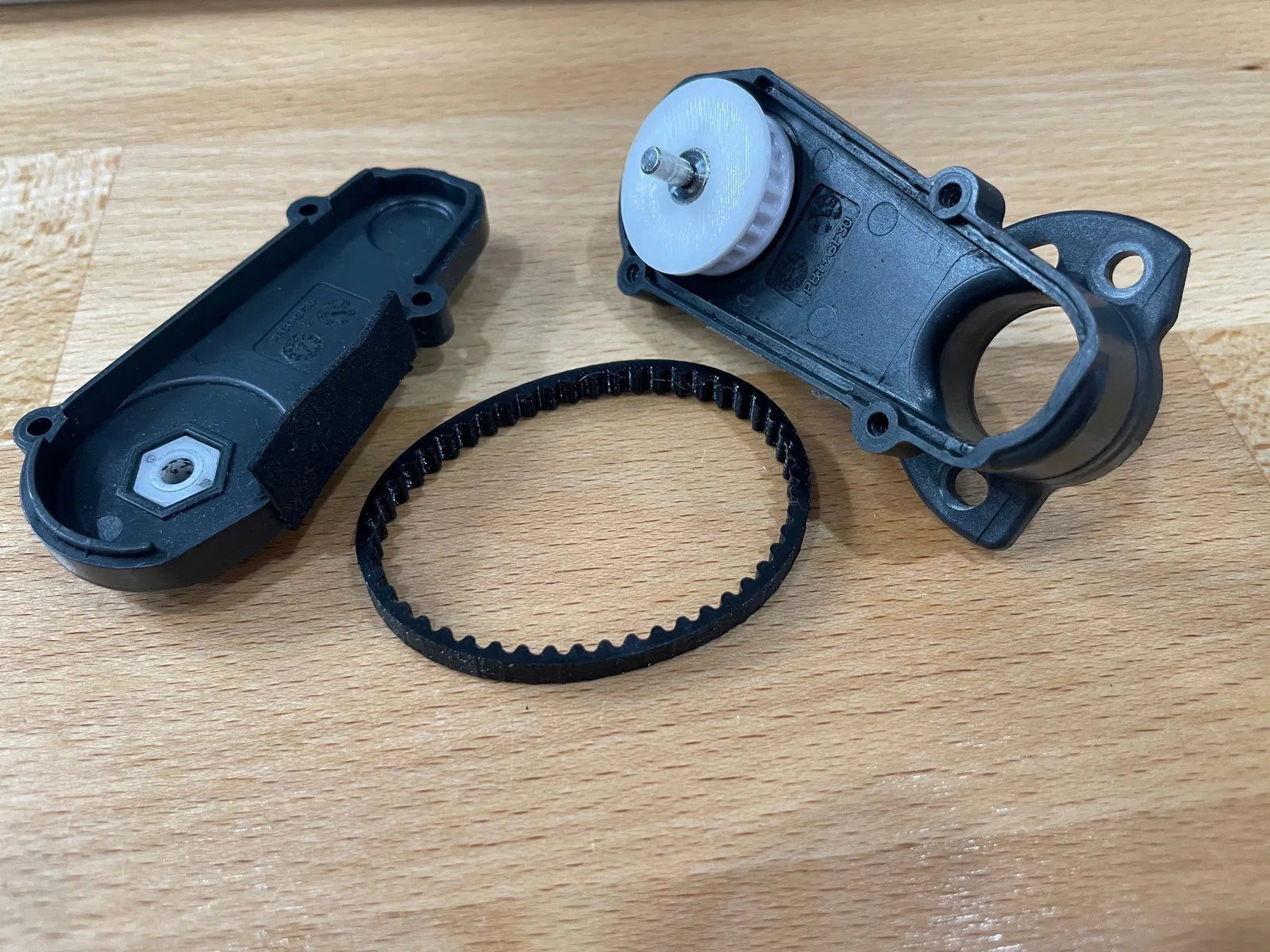 Bộ puly và dây đai thay thế cho hộp số truyền động chổi chính của robot Vorwerk/Kobold VR200. Có 2 dây (48/49 răng) để thử chọn độ căng phù hợp, kèm gợi ý dung sai và thông số in.