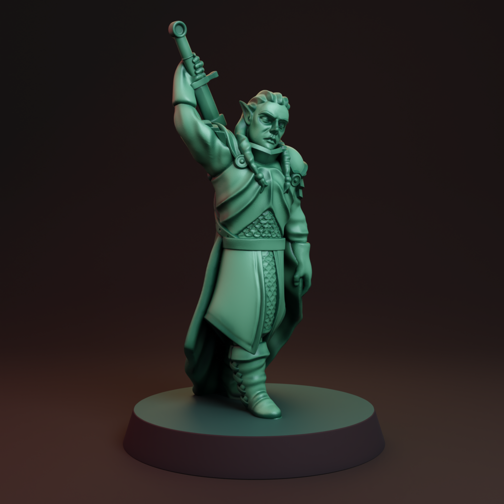 Mô hình mini Elf fighter tỉ lệ 28 mm, tối ưu để in FDM không cần supports. Chi tiết đẹp với nozzle 0,2 và layer height 0,08 mm; nếu dùng nozzle 0,4 mm nên chọn bản dày hơn cho các phần mỏng.