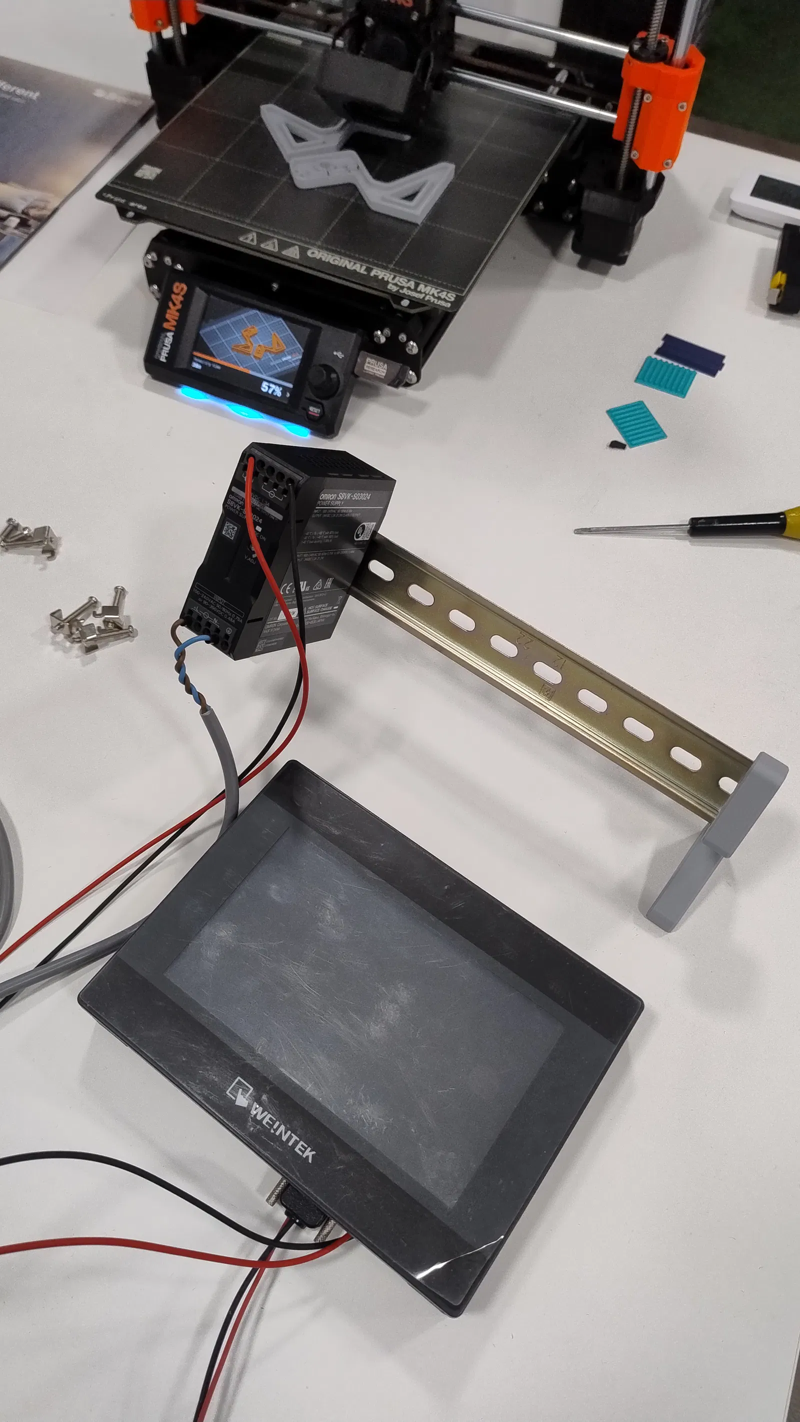 Giá đỡ riel DIN để bàn, dùng để dựng một bộ bàn test (bench) trên desktop. Rất hợp để thử thiết bị, màn hình và các phần tử bảo vệ.