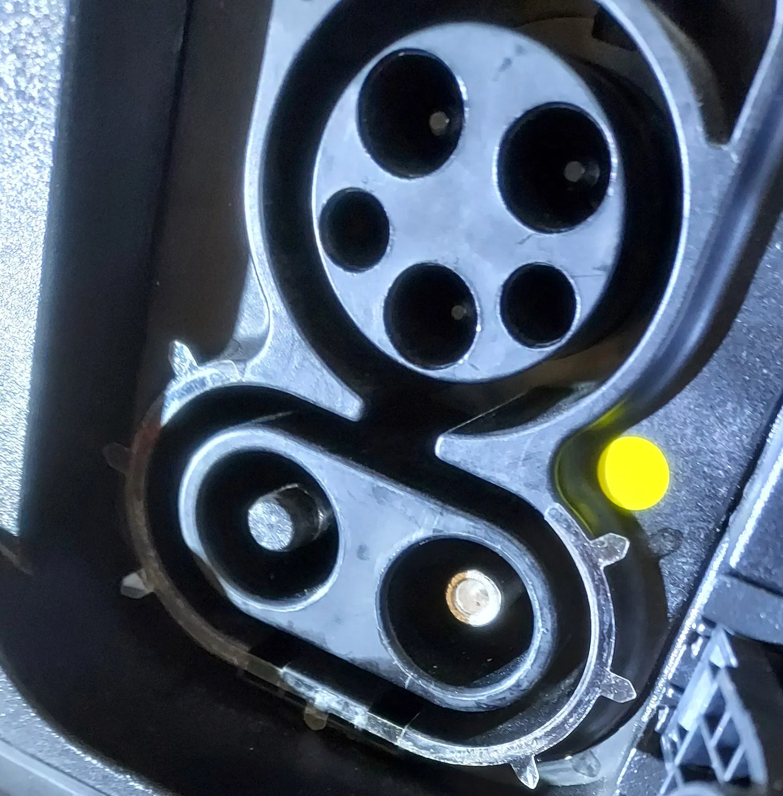 Trên 2024 Kia EV9 có một nắp dẫn hướng (guide cap) bằng nhựa dạng snap-in, gắn vào đầu mỗi chân sạc DC trong cổng sạc CCS. Kia dường như không bán/không cung cấp phụ tùng thay thế cho các nắp này khi chúng bị “bật ra” (unsnap) và rớt mất ở các trạm sạc DC ngẫu nhiên. Thiết kế này là bản tái tạo (recreation) của chi tiết chính hãng Kia, có hỗ trợ bởi AI.