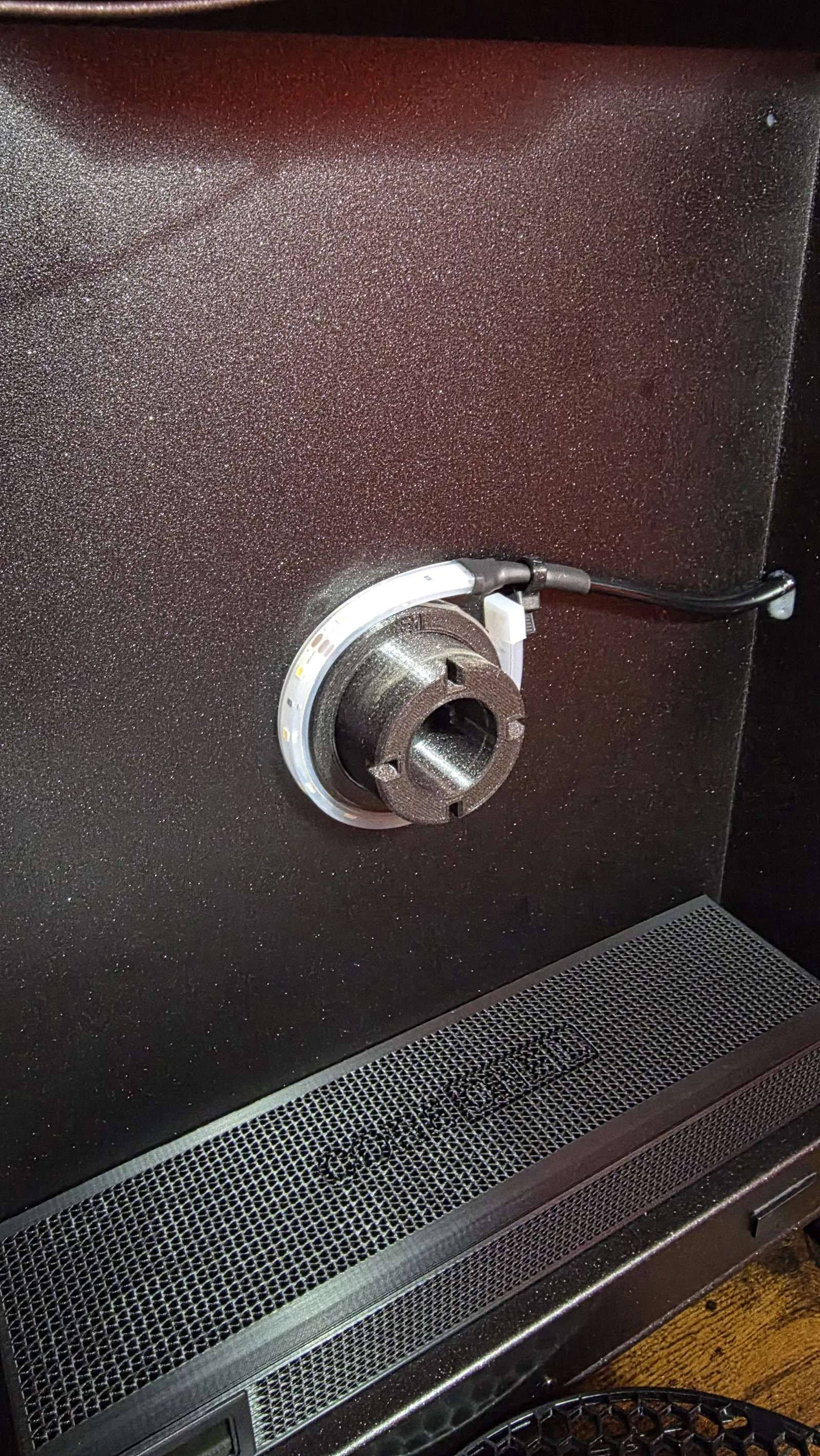 Bản chỉnh sửa đế spool holder cho Prusa CORE One+/L: nới rộng gờ đế thêm 5mm để chừa không gian và dễ dàng gắn dải LED. Phù hợp khi muốn thêm đèn chiếu sáng cho cụm giữ cuộn.