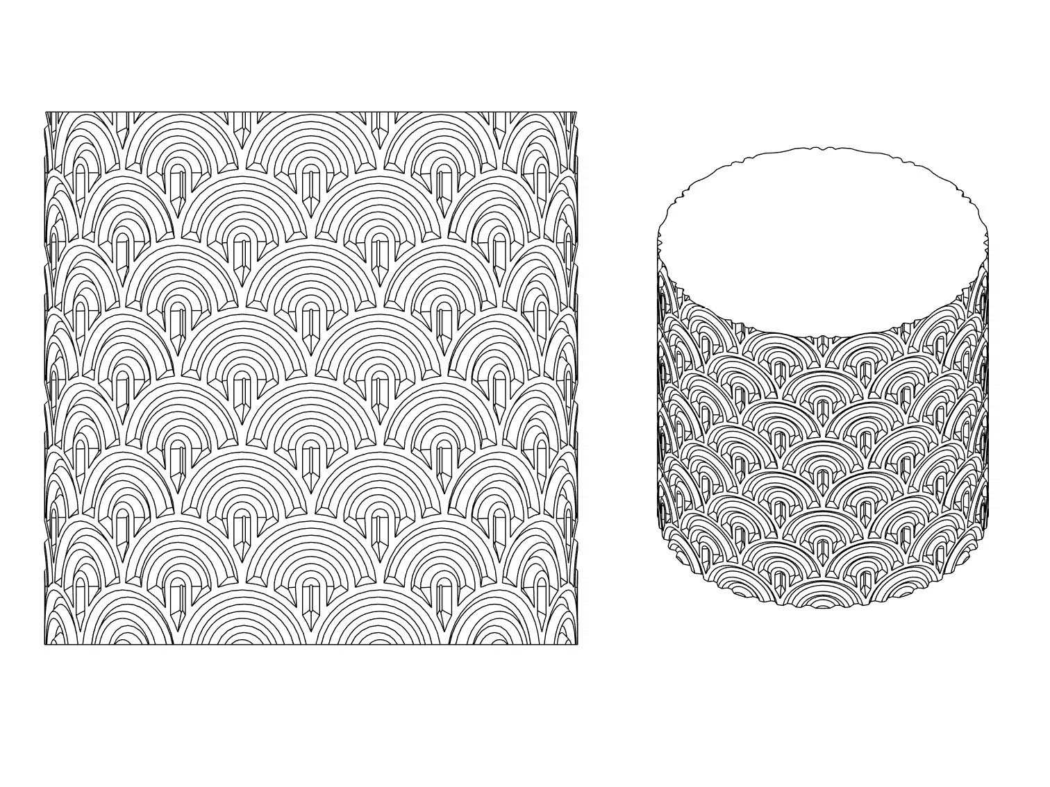 Chậu cây với hoạ tiết vòm (arch) lặp lại, thiết kế để in theo chế độ vase mode.