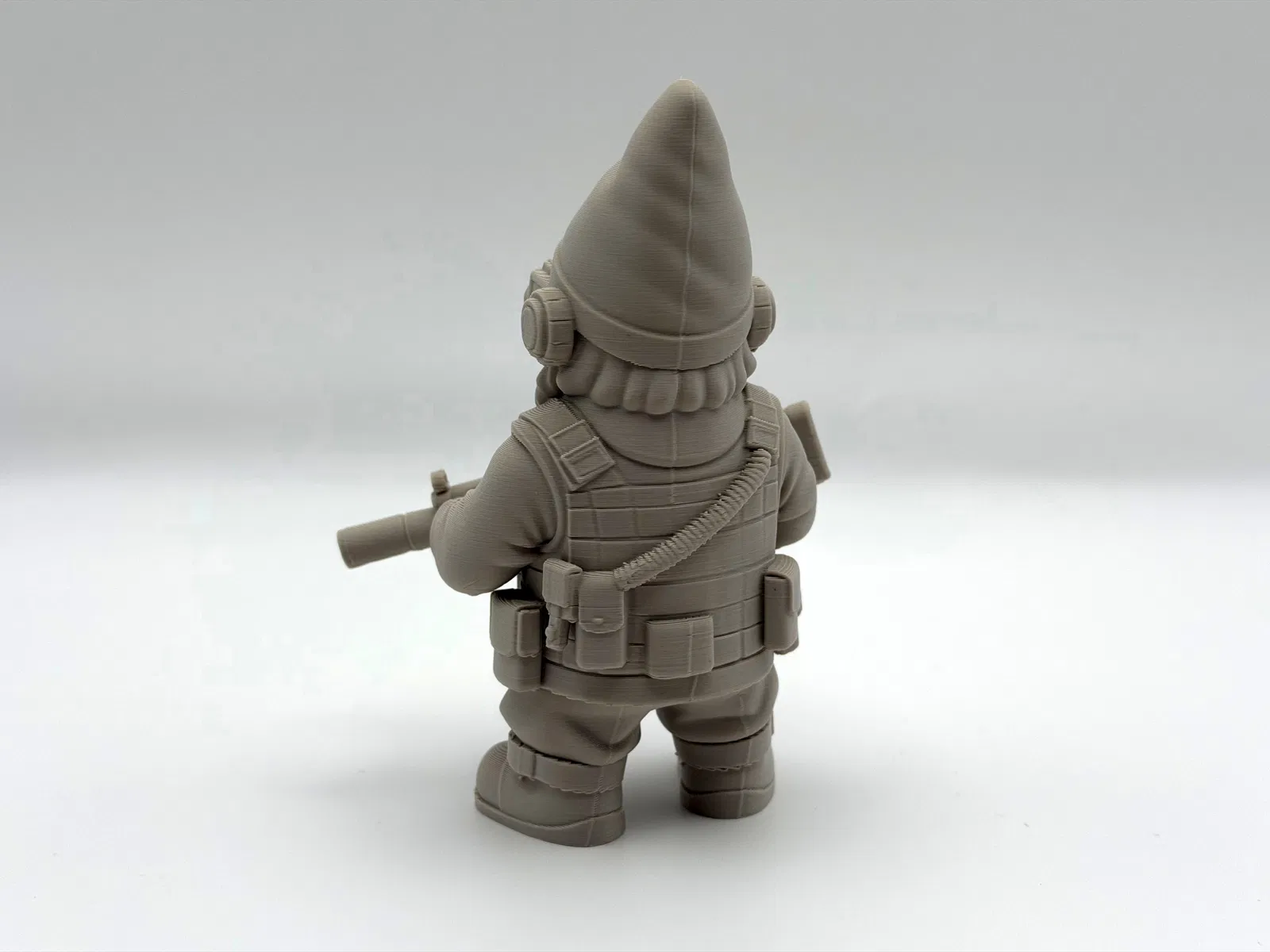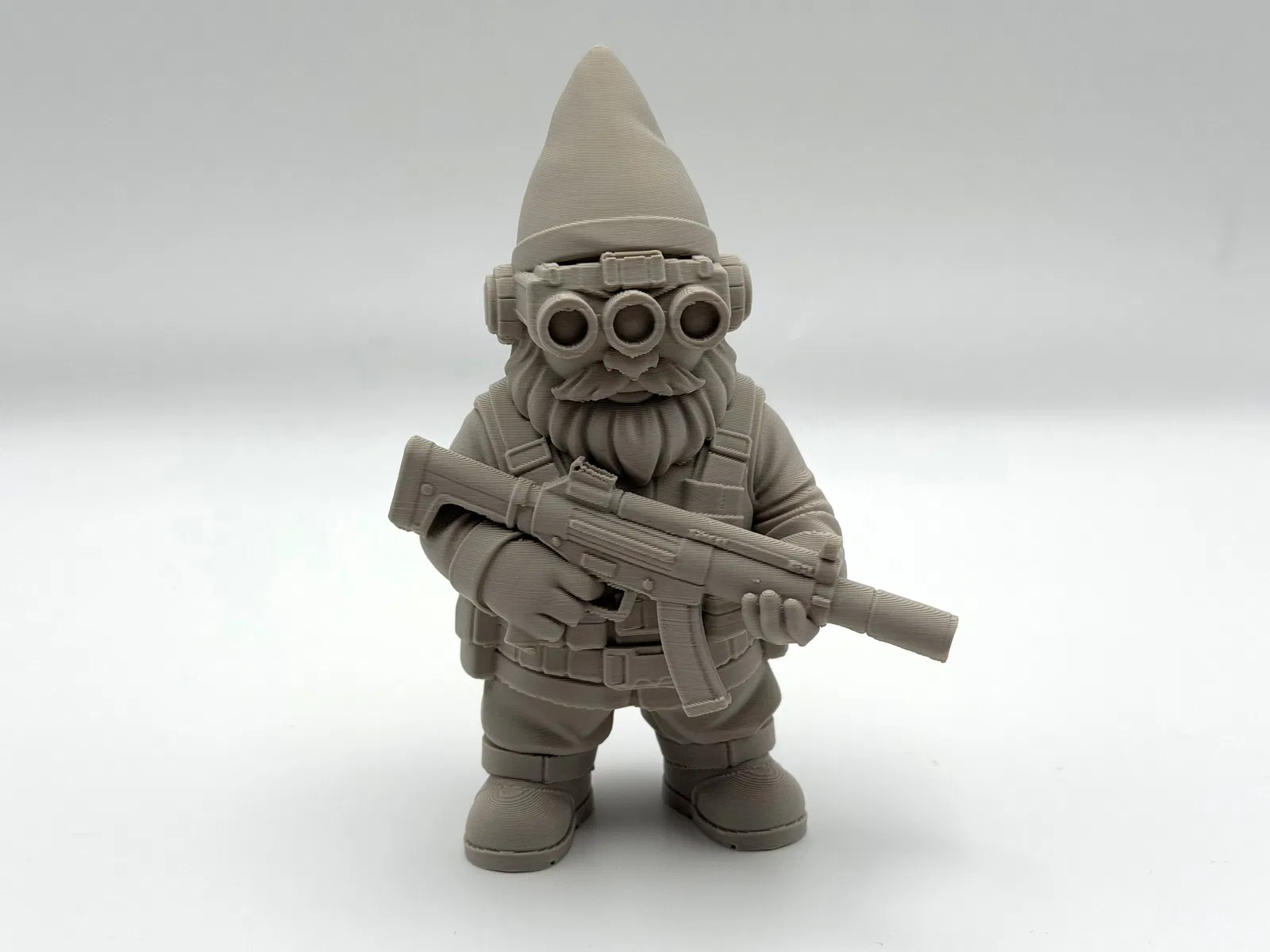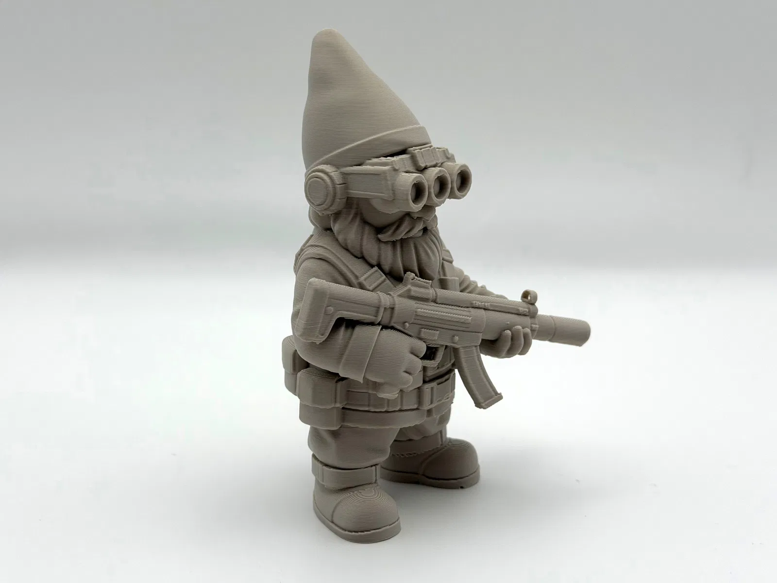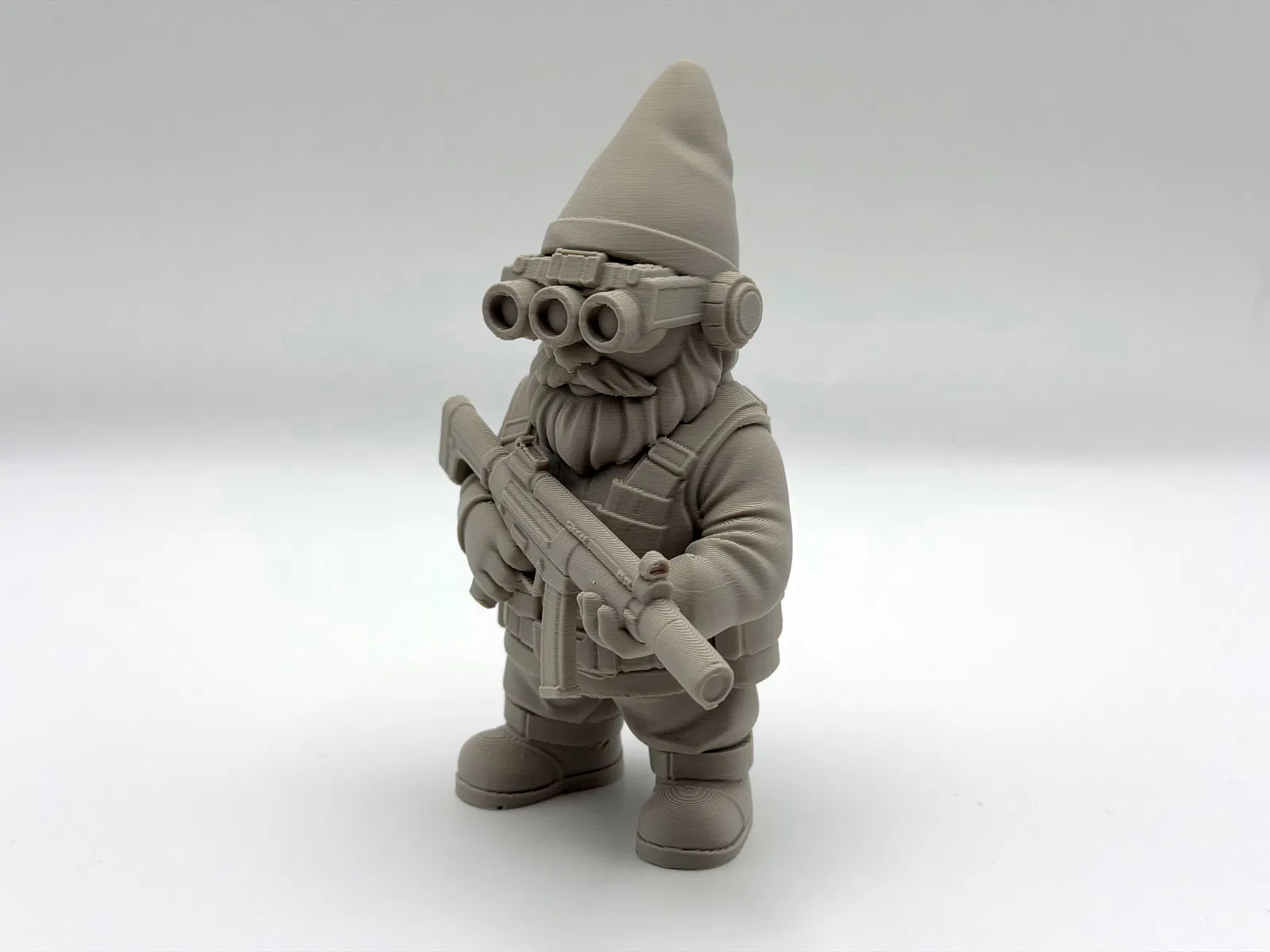 Tactical MP5 Gnome – “vệ binh” khu vườn với kính nhìn đêm và cây MP5 như đang làm nhiệm vụ trinh sát. Ít supports, hợp dùng organic supports và chỉnh Z-top height để tháo support dễ, sạch.