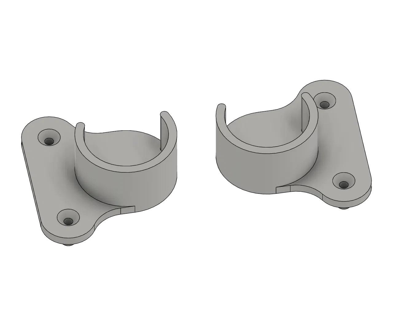 Tôi đã sử dụng hai tay cầm chổi bị cắt rộng 25 mm, cùng với tám ốc vít để lưu trữ dây tóc của tôi. Chủ sở hữu A