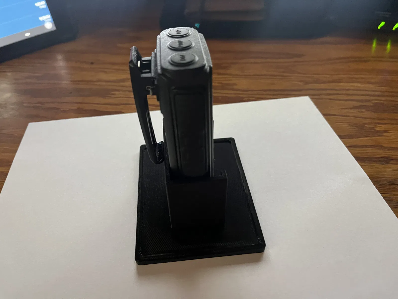 Một anh em trong hội radio amateur có nhờ làm cái đế để giữ cái Anytone BT-01 BlueTooth "HT" của ổng trên bàn làm việc cho chắc, lúc mà xài tai nghe có dây.