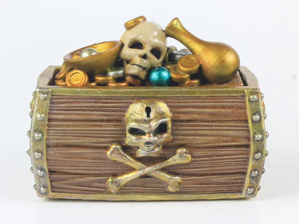 Module bổ sung cho wooden pirate treasure chest: tấm kho báu với xu vàng, đầu lâu, ngọc trai… Tương thích với các mẫu Modular Treasure Chest và Modular Market Stand, có thể scale để dùng cho D&D, tabletop, diorama và board game.
