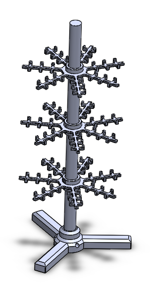 Mẫu móc khóa kèm kệ trưng bày với 3 tầng, có thể tăng thêm tầng tùy nhu cầu. Phần trụ dùng thanh gỗ đường kính 23 mm, giúp lắp ráp chắc chắn và gọn gàng.
