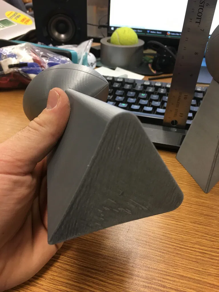 Các file .stl đi kèm là phiên bản cúp nhỏ hơn. Sau đó mình có thiết kế thêm cúp hạng 2 và hạng 3, nhưng khi so kích thước thì lại hơi sát nhau quá, nên mình dùng Makerbot Desktop để scale cả hai phần lên cho tới khi phần đế đạt 140mm theo trục z. Chỉ cần highlight cả hai model, giữ khóa tỉ lệ (aspect ratio locked) là ổn.