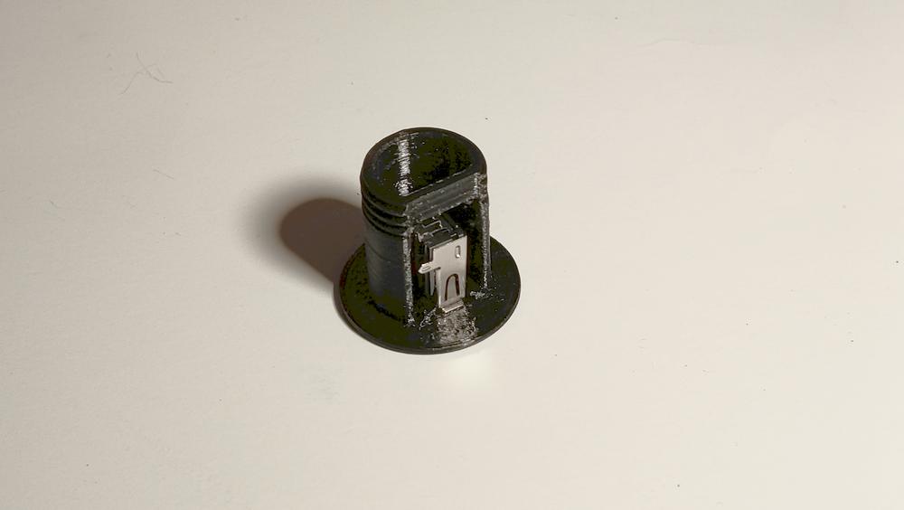 Vì mình muốn dùng lỗ không lớn hơn 20 mm (để phần có USB connector còn lọt qua được), nên mình thiết kế thêm một screwcap “xịn” để siết cố định thiết bị từ phía sau.
