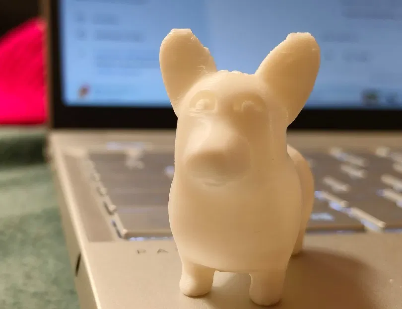 Corgi đứng với đôi mắt hình chữ "C" và không có miệng. Phong cách tối giản, vui vẻ. Cần supports khi in. Rất hợp làm thú cưng để bàn cho bộ sưu tập của bạn!